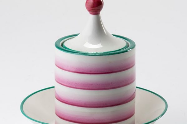 Figura poliedrica che nella sua lunga carriera ha affrontato il mondo della produzione di oggetti in tutte le sue mille sfaccettature e, in asta potete, infatti, trovarne alcuni esempi come il set da cucina degli anni ’30 (lotto 1, € 500) o il bellissimo calamaio del 1927, in porcellana policroma (lotto 8, € 600) che ricorda il tendone di un circo.