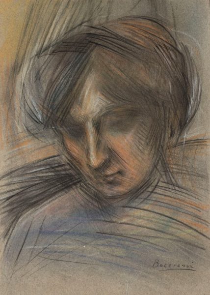 Testa Femminile (lotto 54, stima € 40.000 – 60.000), realizzato a pastelli da Umberto Boccioni, nel 1908-1909, è un tipico esempio dello stile dello stile, anche pittorico, sviluppato da uno dei maggiori esponenti del futurismo. Composto da una serie di linee che si intrecciano tra loro, pur non definendo in maniera netta i lineamenti della donna, riesce a trasmetterci la quiete e dolcezza del suo animo. Un disegno che può benissimo affiancarsi ad altri capolavori dell’artista di origini calabre ben più noti come i dipinti come la serie di ritratti alla madre.