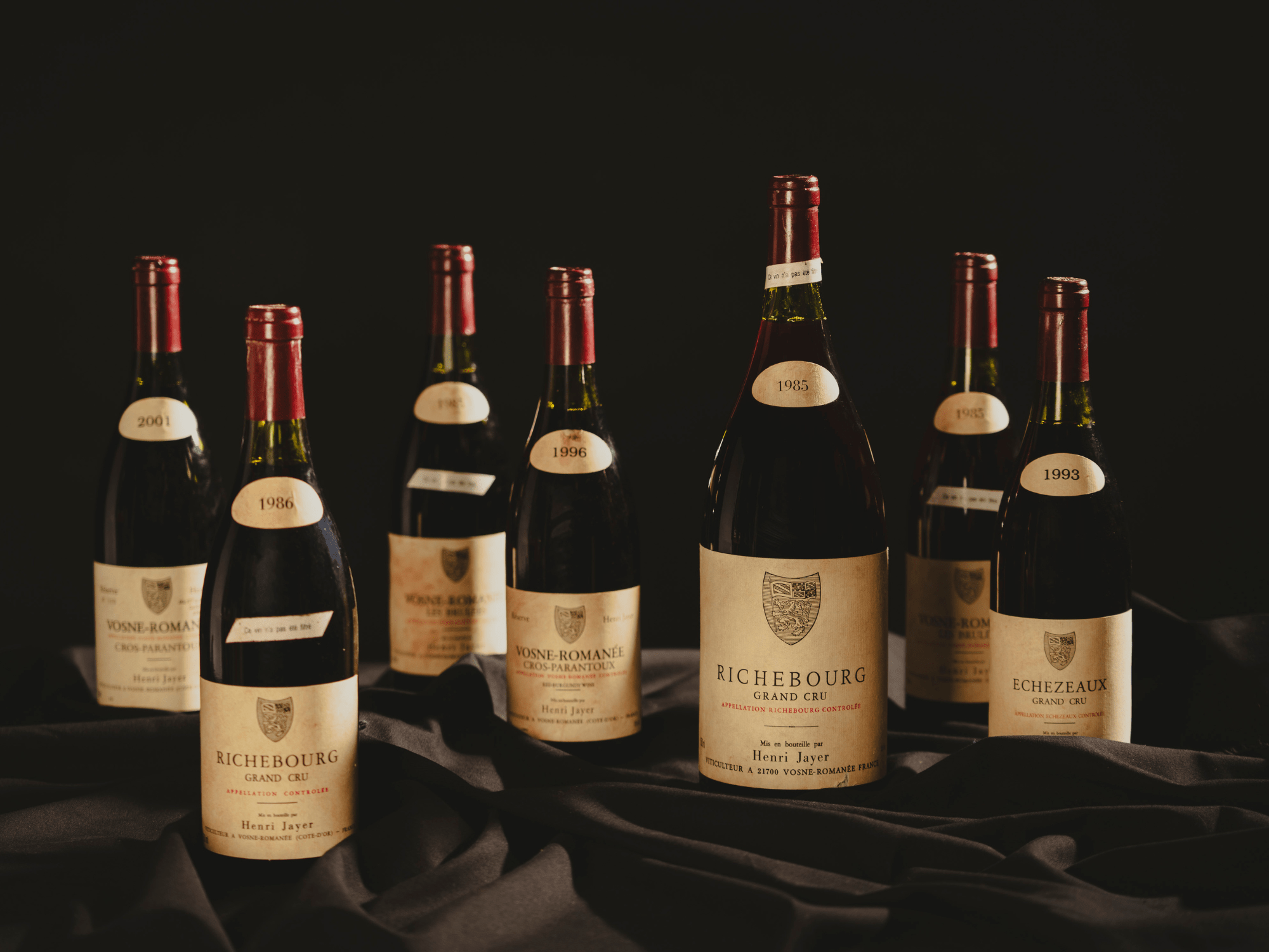 La Francia è rappresentata da una straordinaria selezione di Borgogna, con le bottiglie di Henri Jayer (Lotti 246 – 254), accanto ai quali figurano nomi di assoluto prestigio come il Domaine de la Romanée-Conti (Lotti 211 – 212, 244), il Domaine René Engel (Lotti 201 – 203), oltre a Coche-Dury, Dugat-Py Ramonet, Roulot, Mugneret-Gibourg e Anne Gros, a testimonianza di una proposta ampia e di altissimo livello.
