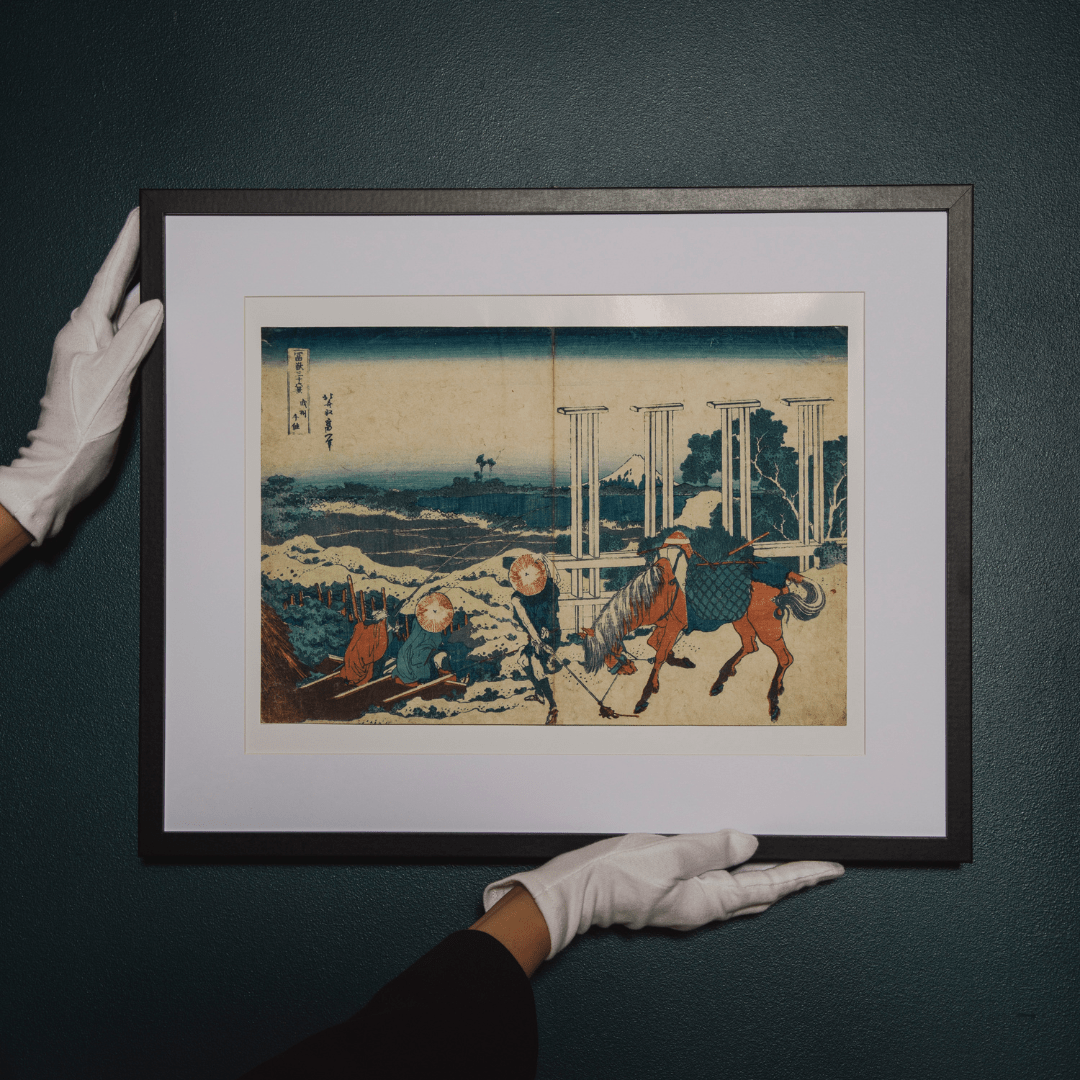Lotto 134. Katsushita Hokusai. Senju, provincia di Musashi (Bushu Senju); “contorno blu”, c.1830/1832. Stima € 10.000 – 15.000
