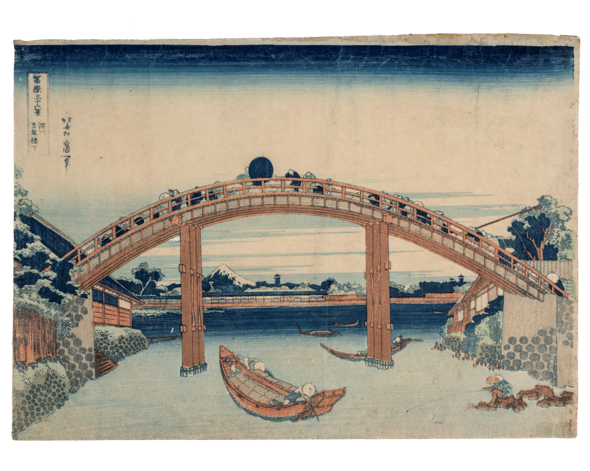 Lotto 135 – Katsushita Hokusai. Sotto il Ponte Mannen a Fukugawa (Fukagawa Mannenbashi no shita); blue outline, c.1830/32. Stima € 15.000 – 20.000