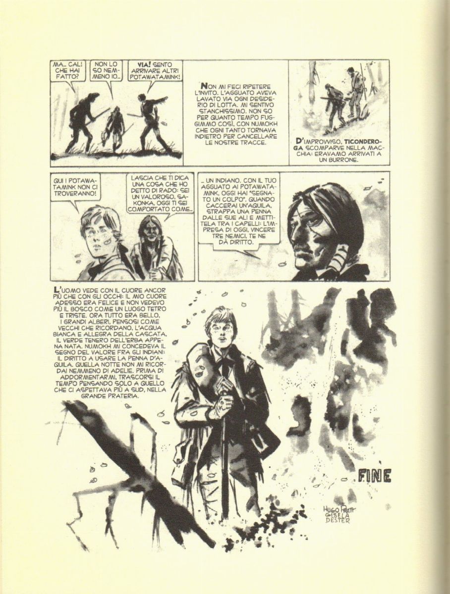 Tavola originale realizzata da Pratt per il XIX episodio di "Ticonderoga", pubblicata per la prima volta in Argentina sulla rivista Frontera Extra n. 6 a pag. 3 dall’Editorial Frontera nell'Aprile del 1959. Recentemente pubblicata su "Ticonderoga" Vol. 2 a pag. 60 dalla Rizzoli nel 2017. Una pagina di altissimo livello artistico e poetico, un pezzo da museo. Firmata da Pratt e dalla sua collaboratrice dell'epoca Gisela Dester.