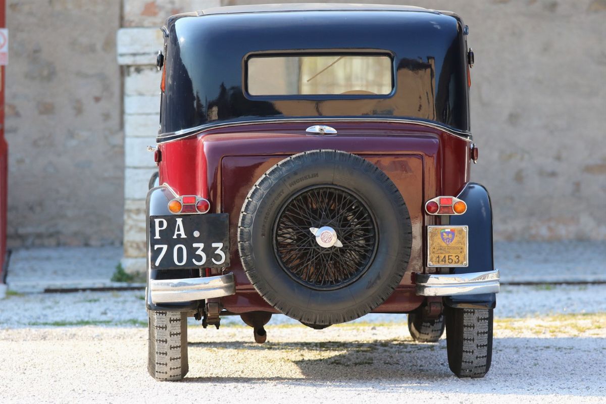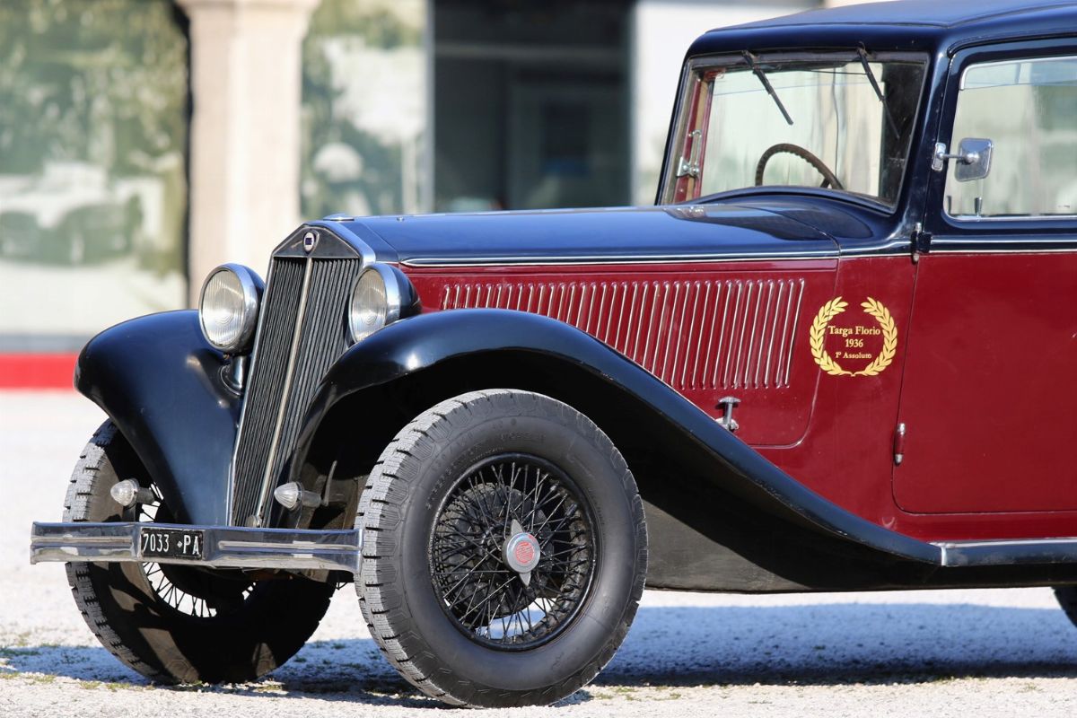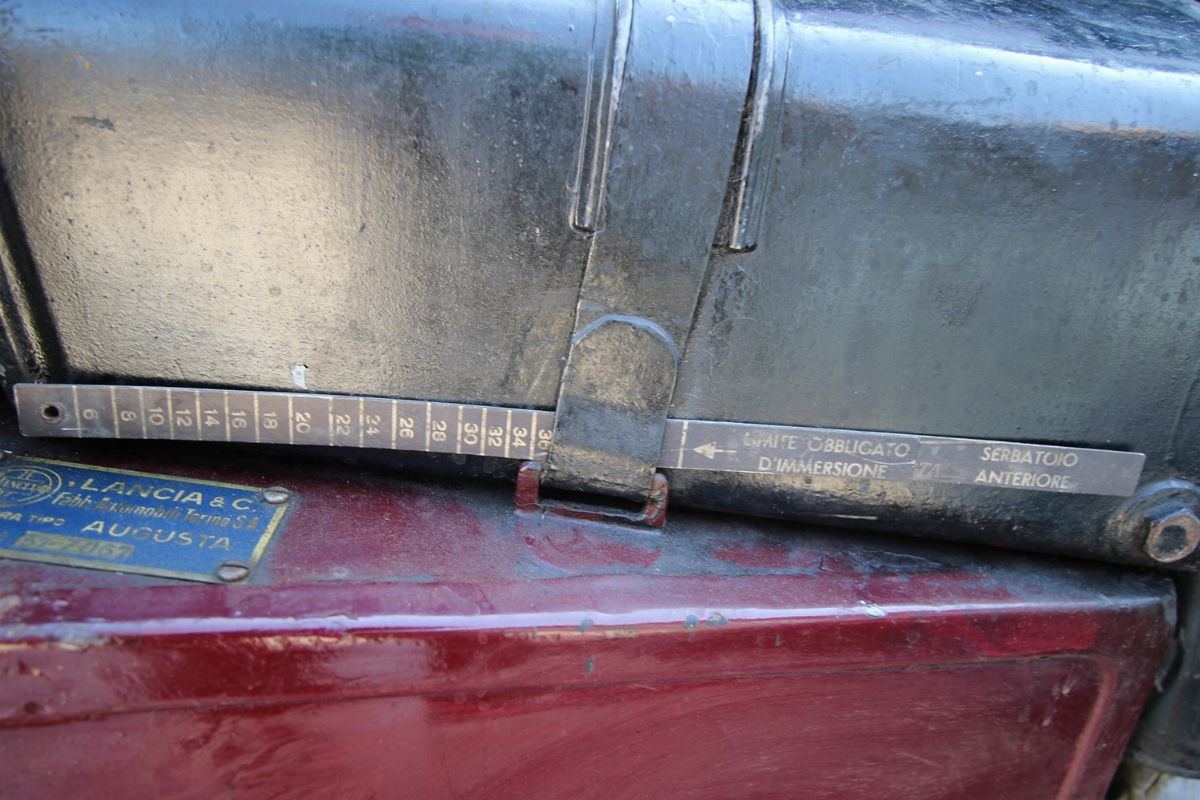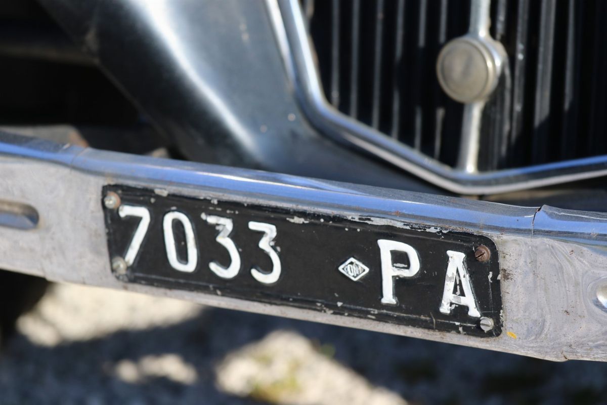La Lancia Augusta, telaio no. 317067 è un esemplare del 1933. È forse l’esemplare di Lancia Augusta esistente più importante storicamente o, comunque, tra i più importanti. È infatti l’esemplare responsabile della più grande impresa sportiva compiuta dalle Lancia Augusta: la vittoria alla Targa Florio. La prestazione si ebbe alla Targa Florio svoltasi il 20 dicembre 1936. Difficoltà finanziarie e problemi attinenti alla partecipazione delle case avevano portato alla decisione di sospendere la gara. Pressati dalla stampa e dagli innamorati della corsa, gli organizzatori del R.A.C.I. di Palermo decisero in extremis di disputare una Targa su due giri con partecipazione limitata a vetture da turismo. LA gara rimase negli annali per le condizioni di implacabile pioggia battente. In gara vi erano 11 vetture, 4 Fiat del recente modello a sei cilindri di 1500 cc, 1 Fiat 514, 1 Bianchi S9 da 1 litro e mezzo di cilindrata, e 5 Lancia Augusta (da 1200cc). La classifica finale vide ben 4 Lancia Augusta, che pure aveva una cilindrata inferiore, prevalere sulle Fiat ed occupare i primi 4 posti. La migliore delle 4 si aggiudica la gara condotta da Costantino Magistri, alla media oraria di 67,087 km, una velocità ragguardevole, viste le condizioni del fondo stradale e la tortuosità del tracciato siciliano delle Madonie. Era l’esemplare con telaio no. 317067, proposto in questo lotto. La vettura si presenta nelle condizioni di ottima conservazione, con un restauro non recente, una manutenzione attenta e tutti i dettagli corretti e presenti. Verniciatura bicolore nero/amaranto con filetti bianchi, cromature da rivedere, ruote a raggi nere e interni in panno/pelle beige in buone condizioni. Le targhe, bellissime e preziosissime, sono le originali: PA7033. Corretti gli pneumatici a bassa pressione Michelin Supercomfort.