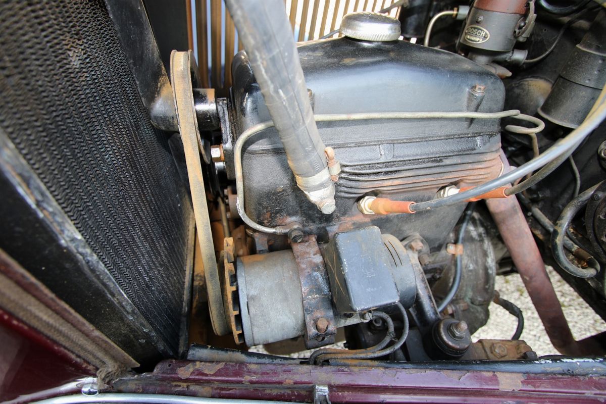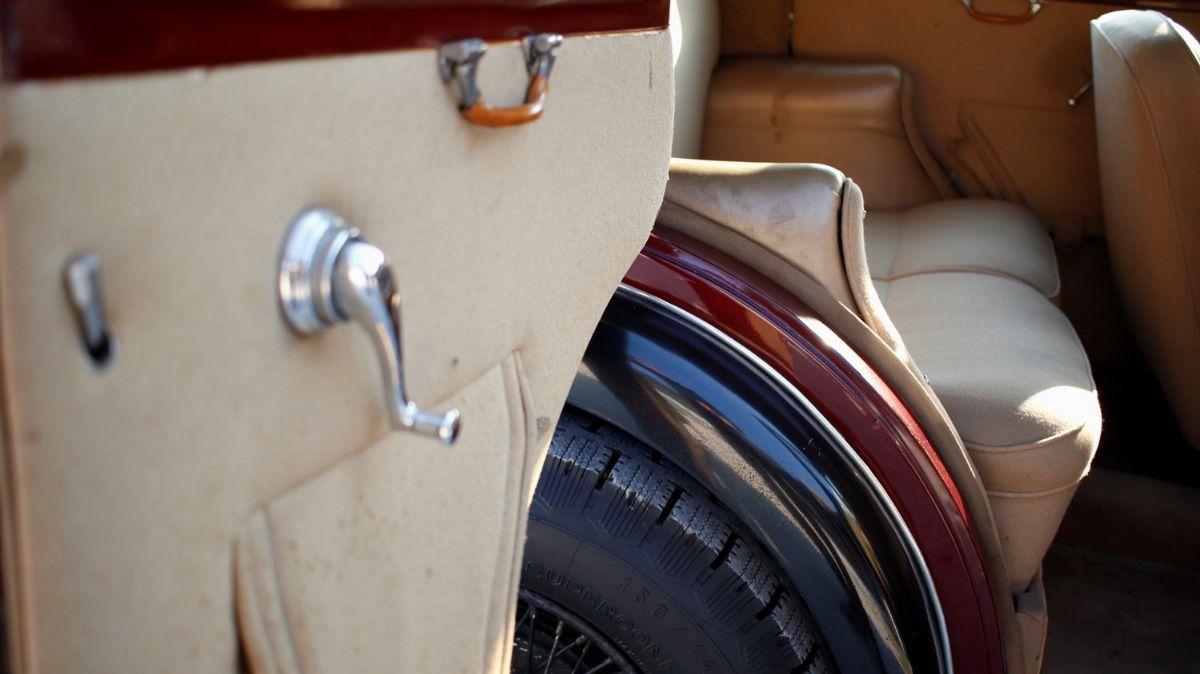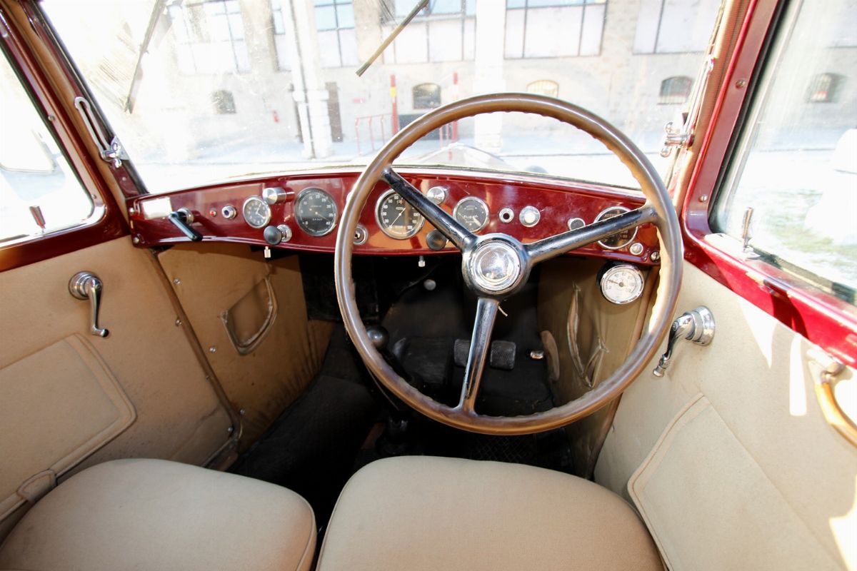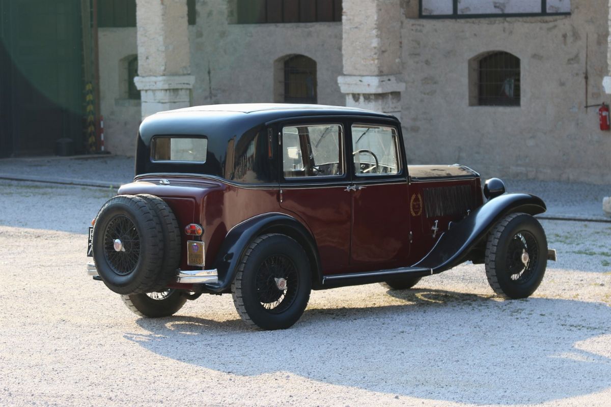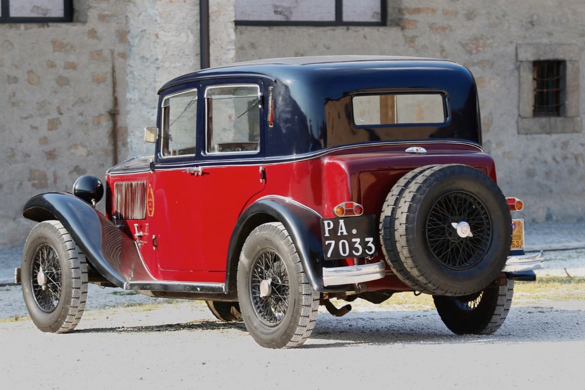 La Lancia Augusta, telaio no. 317067 è un esemplare del 1933. È forse l’esemplare di Lancia Augusta esistente più importante storicamente o, comunque, tra i più importanti. È infatti l’esemplare responsabile della più grande impresa sportiva compiuta dalle Lancia Augusta: la vittoria alla Targa Florio. La prestazione si ebbe alla Targa Florio svoltasi il 20 dicembre 1936. Difficoltà finanziarie e problemi attinenti alla partecipazione delle case avevano portato alla decisione di sospendere la gara. Pressati dalla stampa e dagli innamorati della corsa, gli organizzatori del R.A.C.I. di Palermo decisero in extremis di disputare una Targa su due giri con partecipazione limitata a vetture da turismo. LA gara rimase negli annali per le condizioni di implacabile pioggia battente. In gara vi erano 11 vetture, 4 Fiat del recente modello a sei cilindri di 1500 cc, 1 Fiat 514, 1 Bianchi S9 da 1 litro e mezzo di cilindrata, e 5 Lancia Augusta (da 1200cc). La classifica finale vide ben 4 Lancia Augusta, che pure aveva una cilindrata inferiore, prevalere sulle Fiat ed occupare i primi 4 posti. La migliore delle 4 si aggiudica la gara condotta da Costantino Magistri, alla media oraria di 67,087 km, una velocità ragguardevole, viste le condizioni del fondo stradale e la tortuosità del tracciato siciliano delle Madonie. Era l’esemplare con telaio no. 317067, proposto in questo lotto. La vettura si presenta nelle condizioni di ottima conservazione, con un restauro non recente, una manutenzione attenta e tutti i dettagli corretti e presenti. Verniciatura bicolore nero/amaranto con filetti bianchi, cromature da rivedere, ruote a raggi nere e interni in panno/pelle beige in buone condizioni. Le targhe, bellissime e preziosissime, sono le originali: PA7033. Corretti gli pneumatici a bassa pressione Michelin Supercomfort.