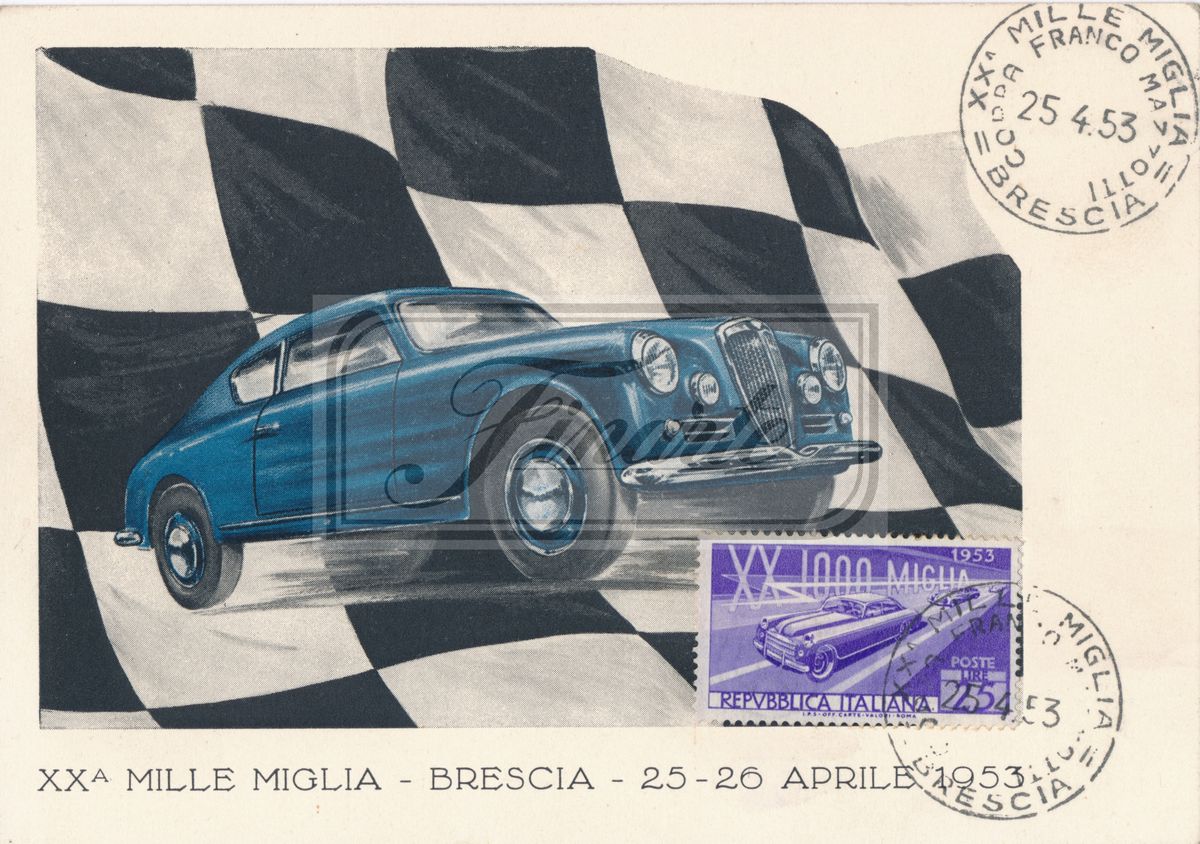 Con francobollo XX 1000 Miglia, celebrativa della Lancia Aurelia (italiano - 15 cm x 10 cm)