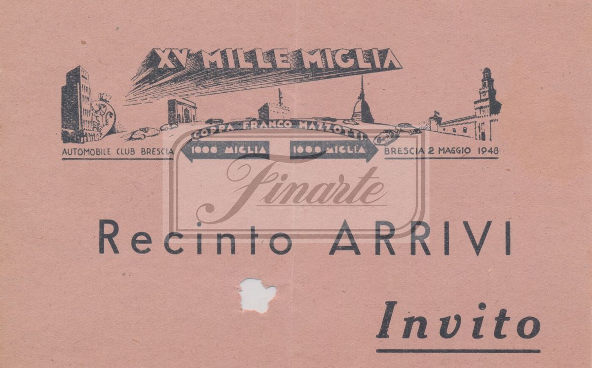 - Accesso al recinto arrivi della XIV Mille Miglia del 1947 (13 cm x 10 cm); - Accesso al recinto partenze della XV Mille Miglia del 1948 (12 cm x 8 cm); - Accesso al recinto arrivi della XV Mille Miglia del 1948 (12 cm x 8 cm).
