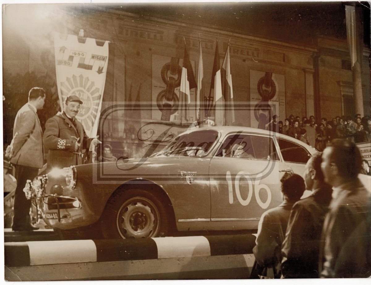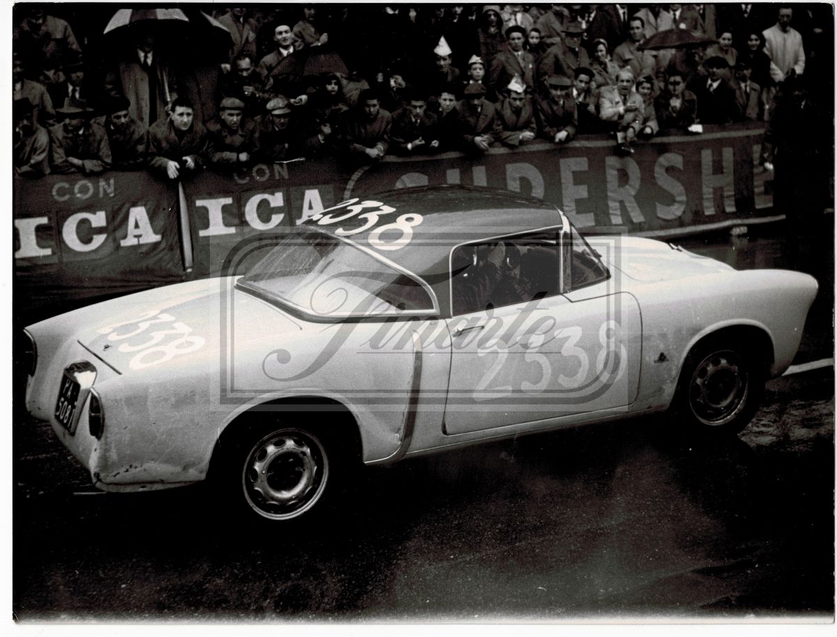 - #106 Alfa Romeo Giulietta SV, Sgorbati/Zanelli - 11° ass. (n°2 fotografie, Attualfoto/unknown, b/n - 18 cm x 13 cm/24 cm x 18 cm);
