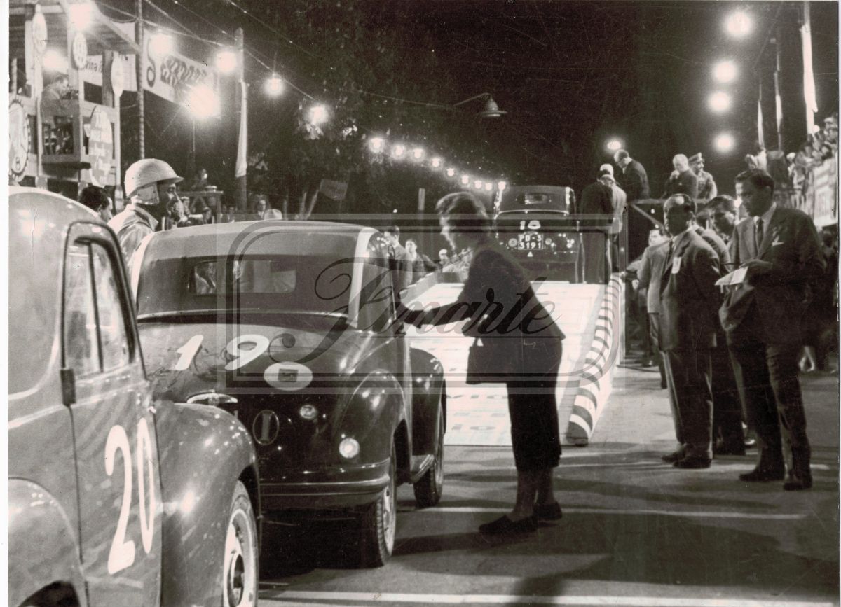 - #18 Cordini/Erasmo, #19 Thiele/Storzini, #20 bellini/Cavaliere tutti su Fiat Abarth 750 alla partenza di Brescia (b/n - 28,5 cm x 21,5 cm);