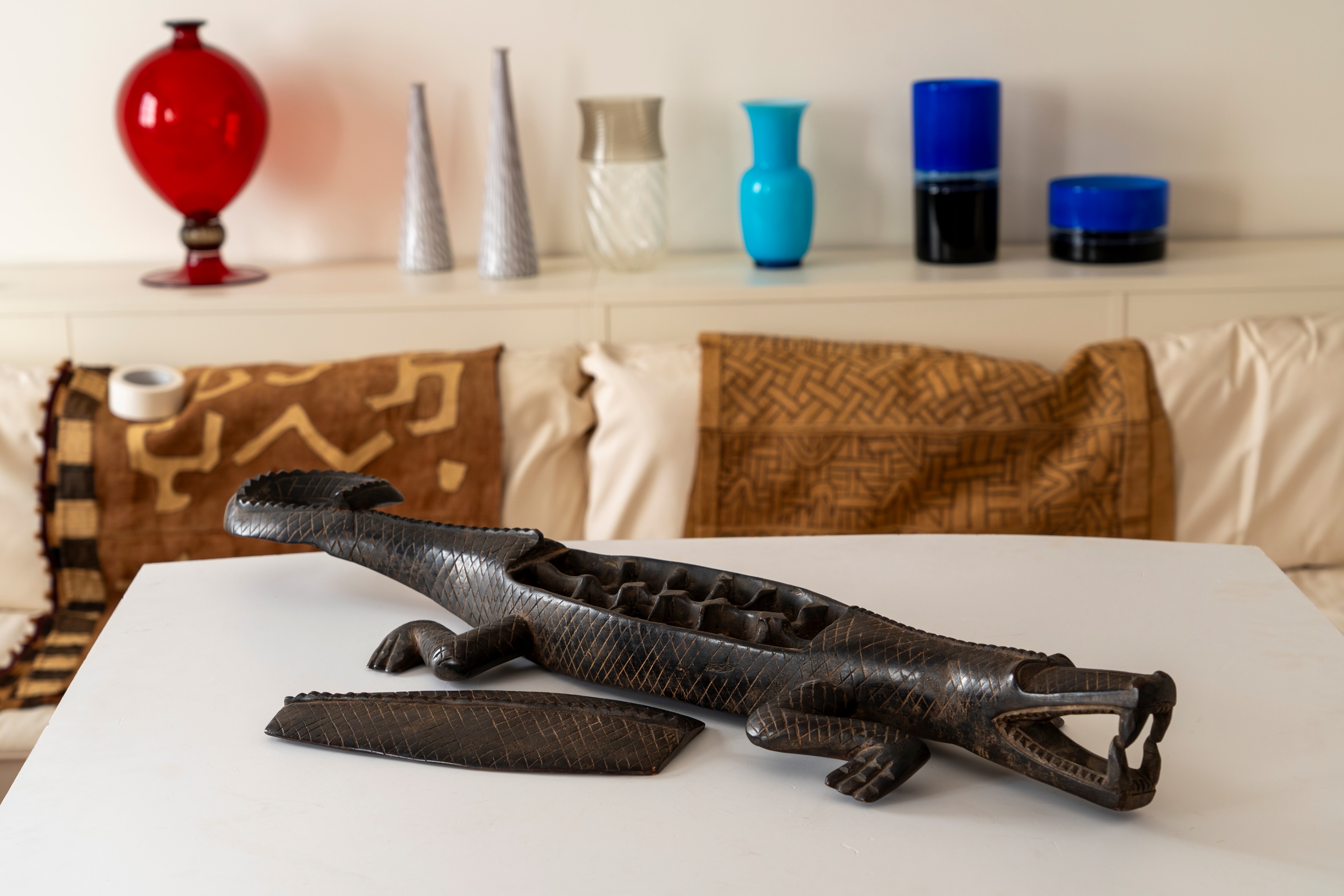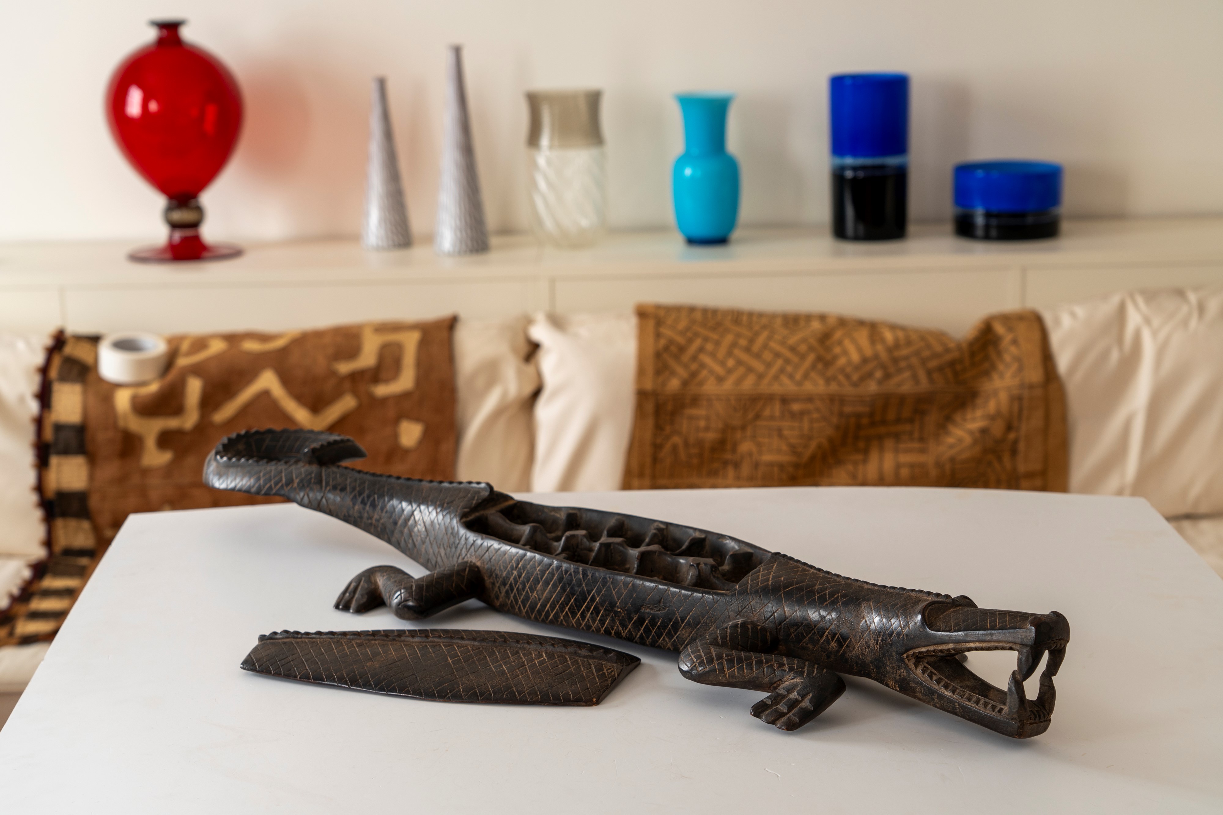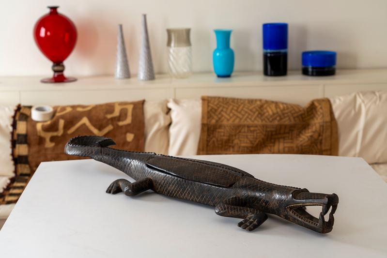 in legno a forma di coccodrillo e con coperchio , molto diffuso tra le popolazioni africane.