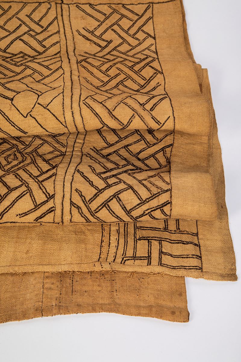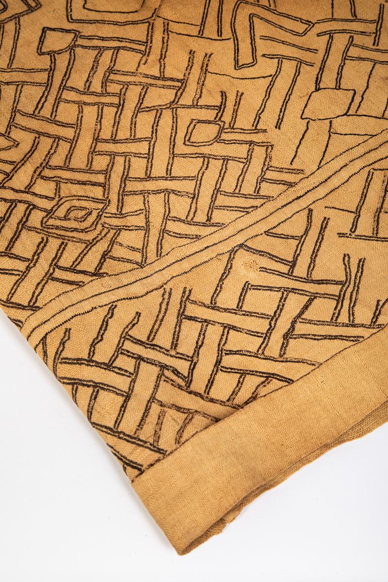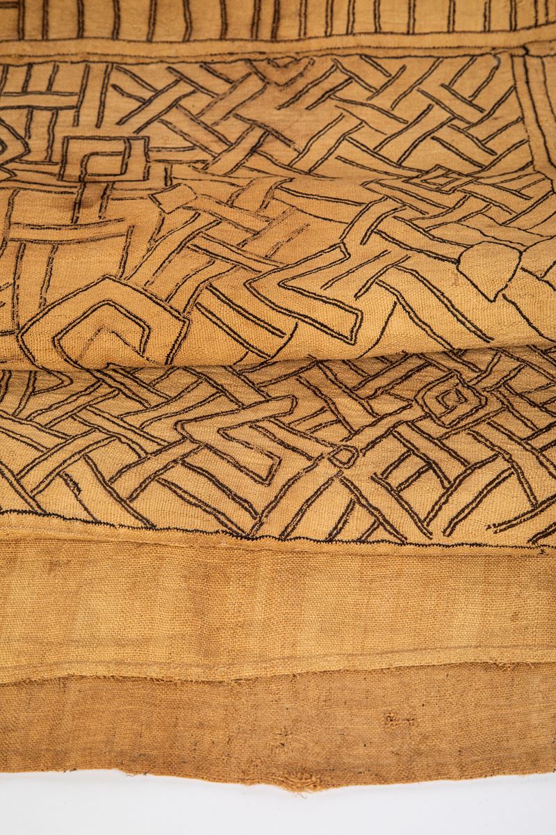 Il gruppo etnico Shoowa, che appartiene al grande popolo Kuba, ha sviluppato attraverso i tessuti di cotone, un’arte originale che non trova riscontro negli altri popoli dell’Africa Nera. I tessuti venivano fabbricati utilizzando la foglia della palma-rafia che una volta sfibrata, veniva lavorata su un telaio ad un liccio in modo da ottenere l’ordito. Questa prima operazione era svolta dagli uomini. Successivamente le donne eseguivano il ricamo con pezzi di fibre vegetali colorate con i tradizionali colori ottenuti con sostanze di origine naturale come il rosso, l’indaco, il giallo, l’ocra ed il nero.