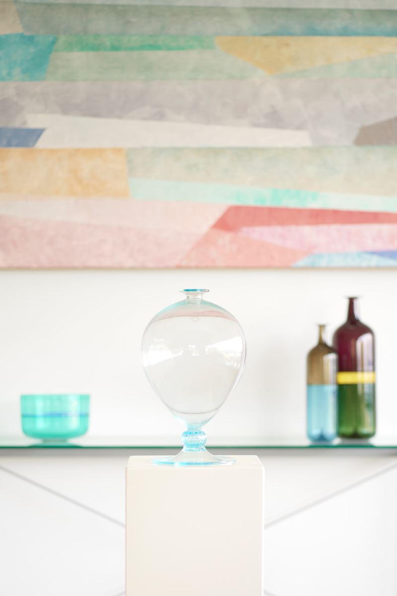 Vaso modello no. 5184 del catalogo M.V.M. Cappellin & C. e no. 1633 del catalogo Venini & C. detto 'Veronese', vetro azzurrino con piede a disco e nodo schiacciato