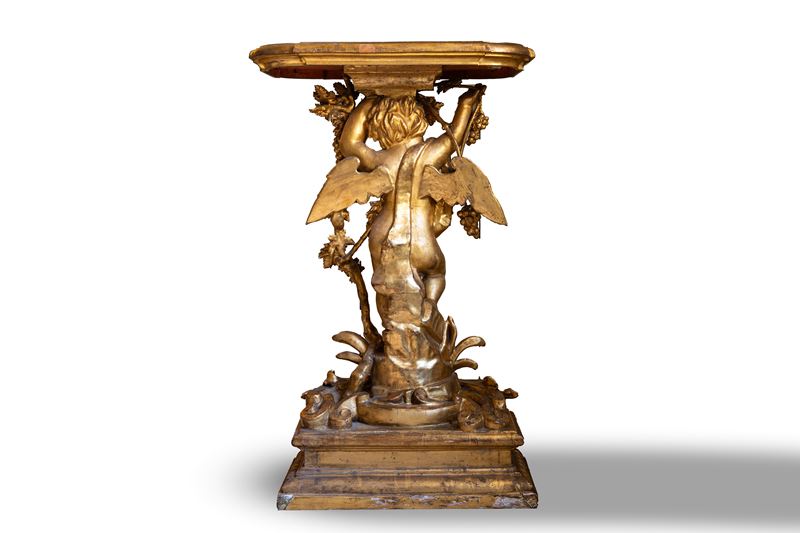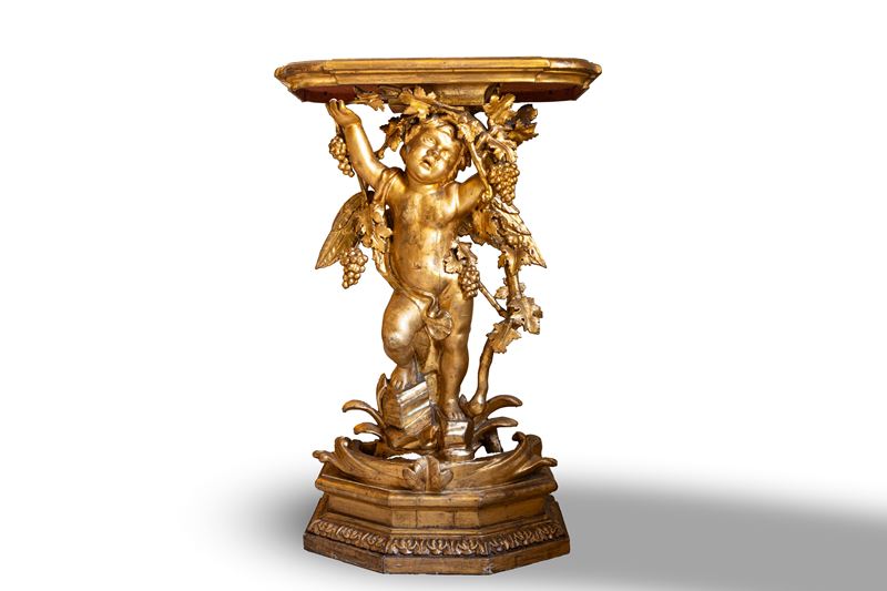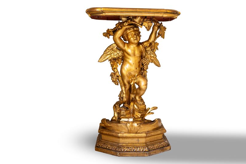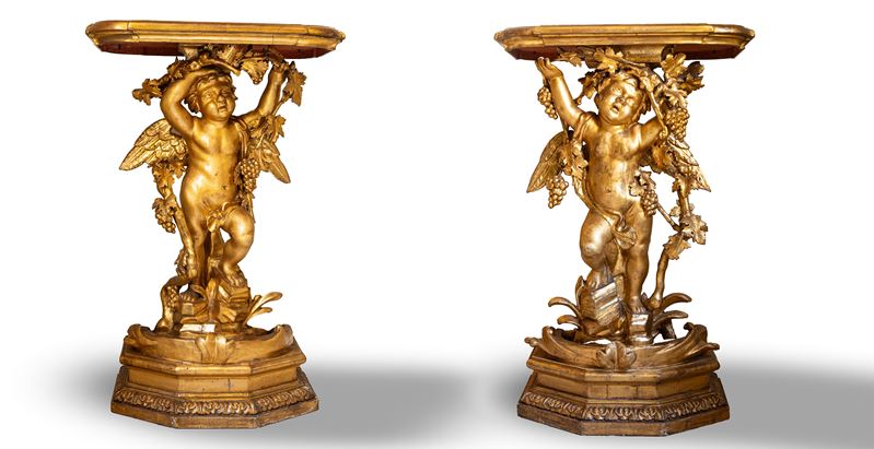 ciascuna con sostegno in forma di putto bacchico poggiante su base esagonale