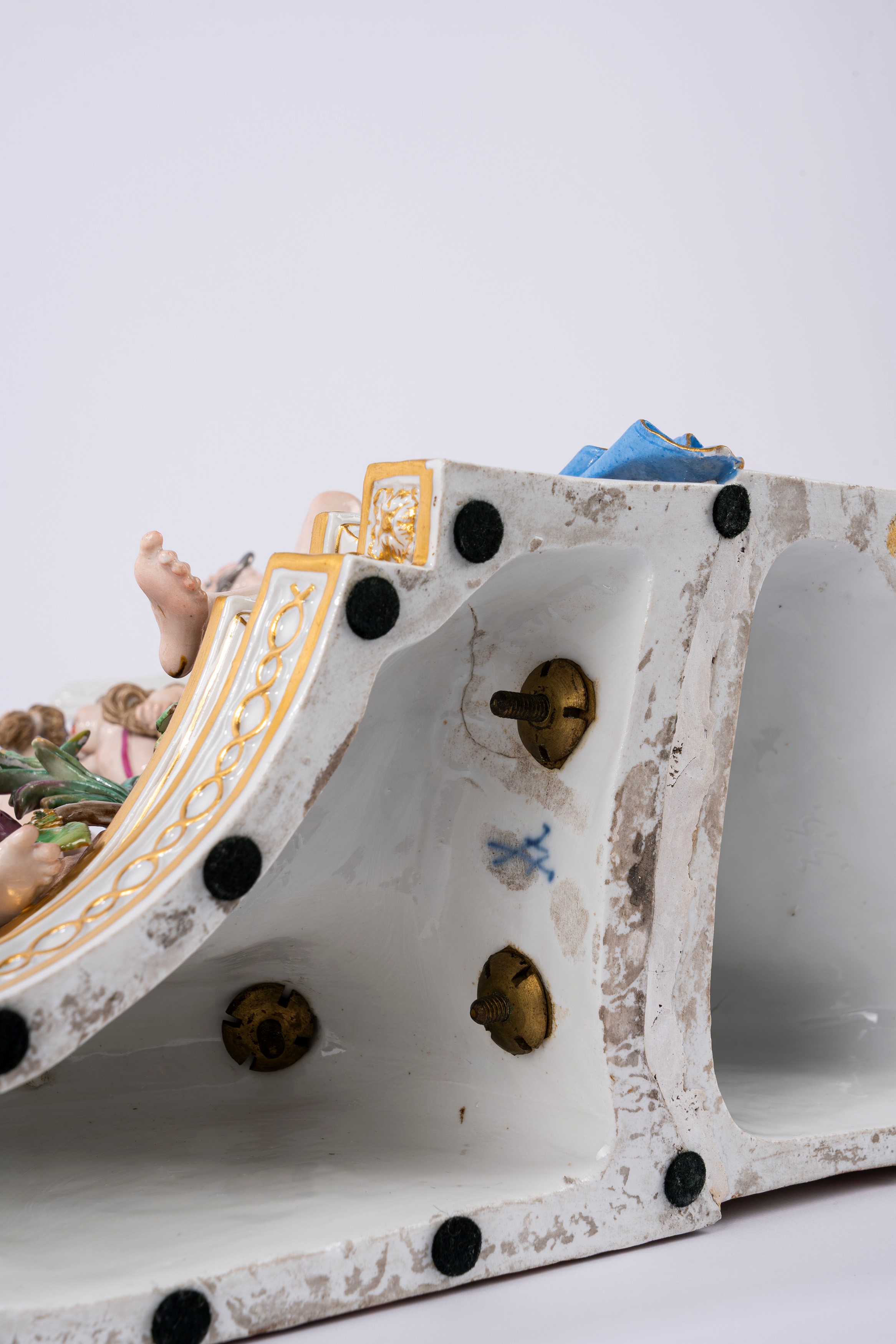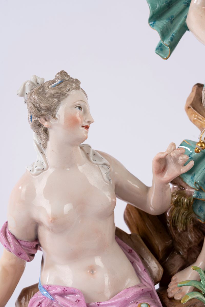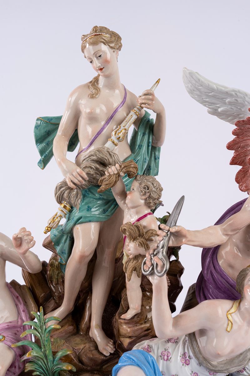 Da un modello di Johan Joachim Kaendler del 1774, come parte del “Grande Ordine Russo”, destinato alla decorazione di un mobile nel padiglione presso le Colline della Bobsleigh nel parco del Palazzo di Oranienbaum. Il suddetto gruppo doveva essere d’auspicio per una lunga vita per la zarina Caterina II (si veda U. Pietsch, Meissen for the Czars (2004), cat. n. 174 e pp. 103–125, per una discussione sul dono a