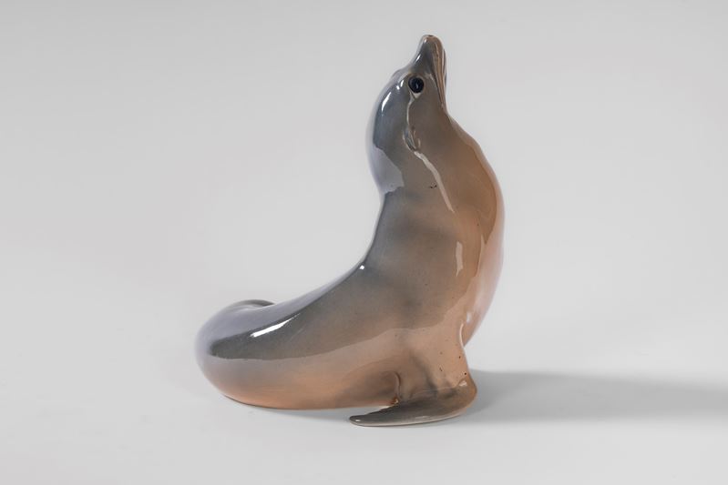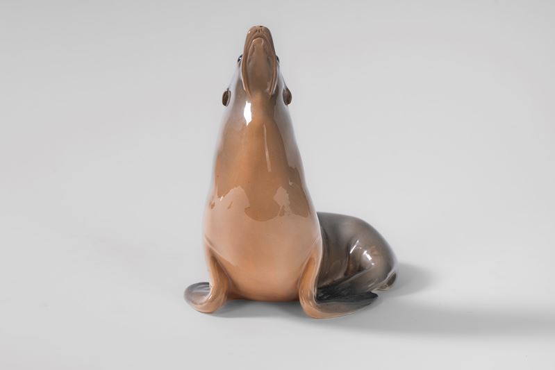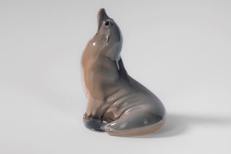Piccolo pesce persico in porcellana policroma. Royal Copenhagen, Danimarca, secolo XX