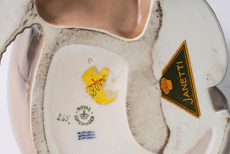 Due martin pescatore su roccia in porcellana policroma. Bing & Grøndahl, Danimarca, secolo XX