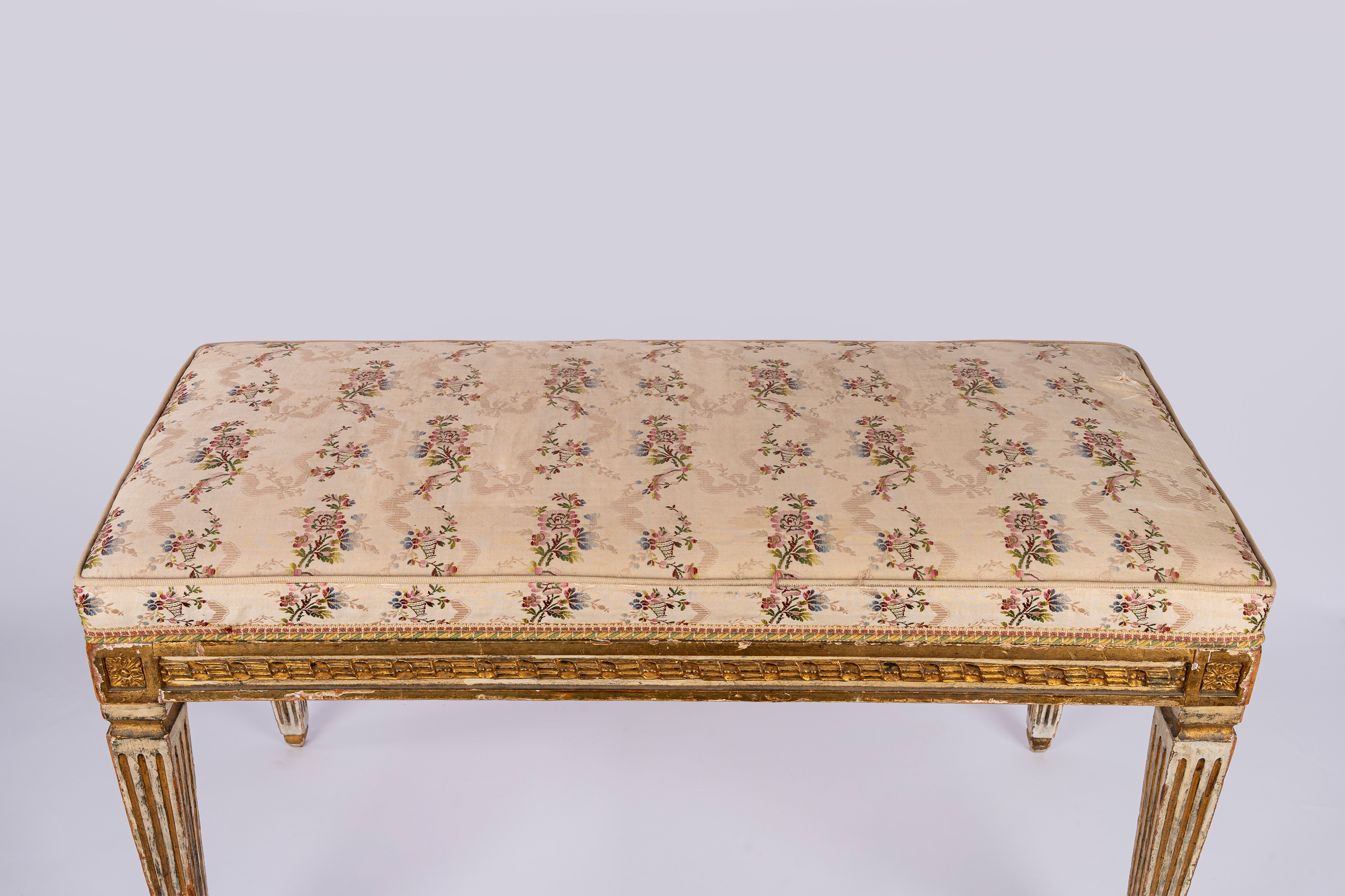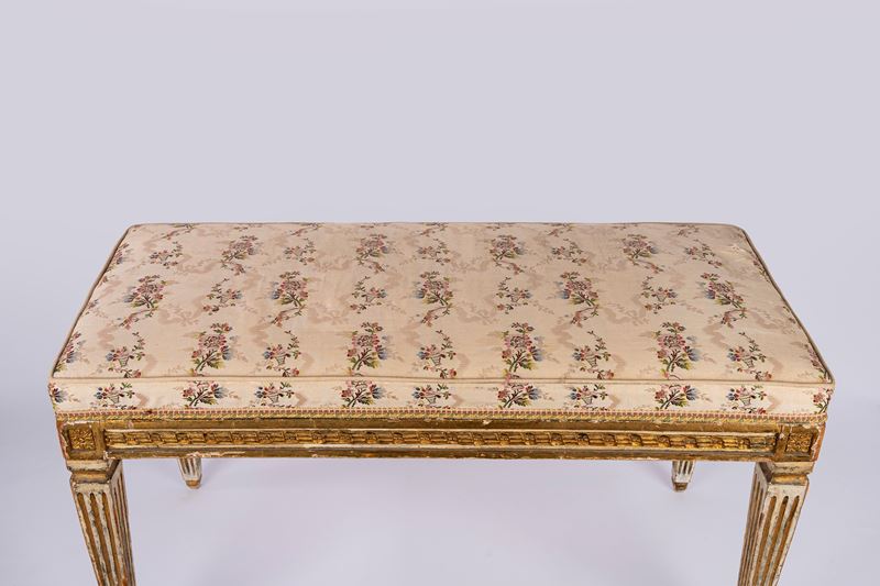 Panchetto in legno laccato e dorato in stile Luigi XVI.