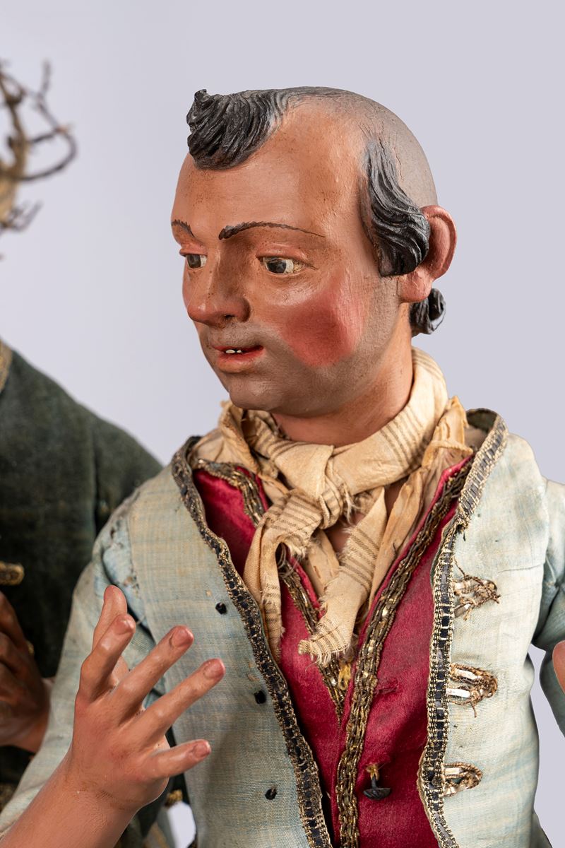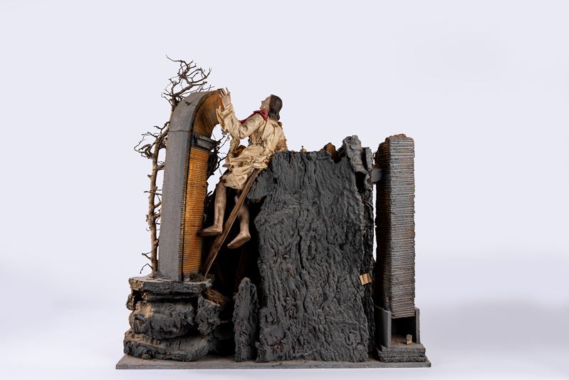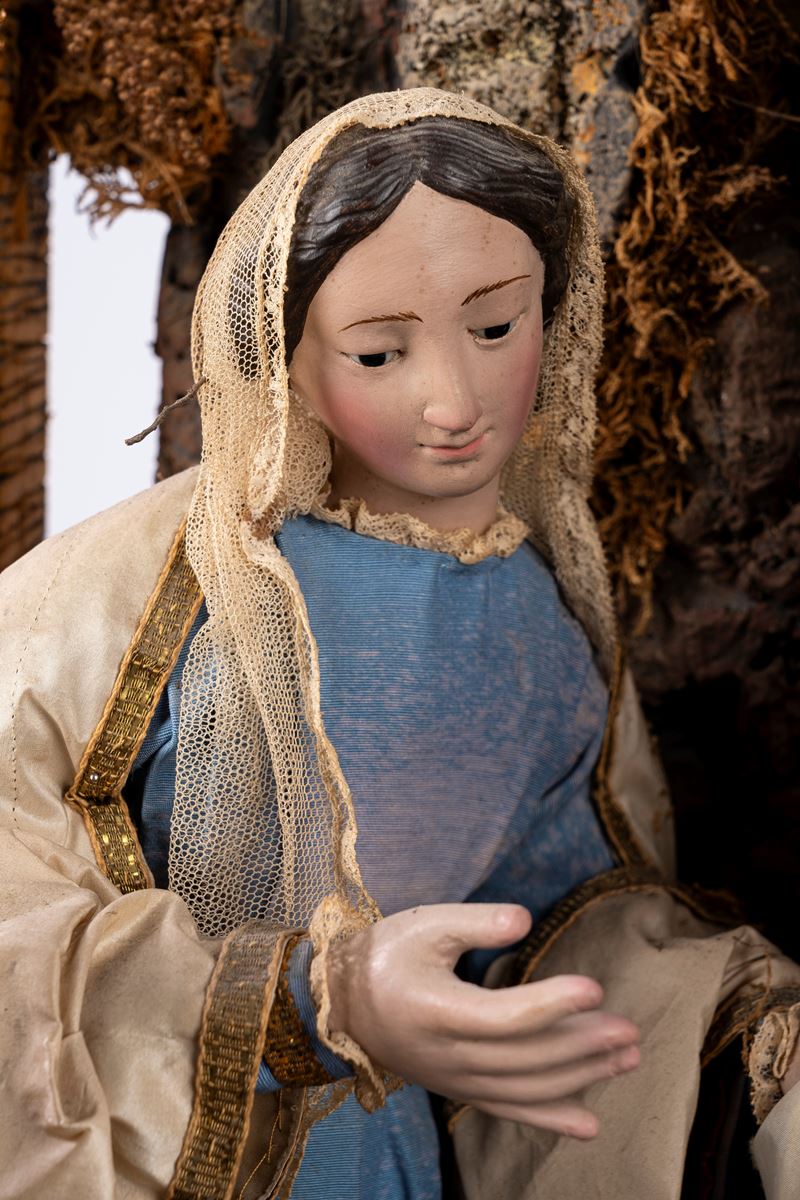 Gruppo scultoreo in corallo raffigurante presepe in miniatura. Italia meridionale, secolo XIX