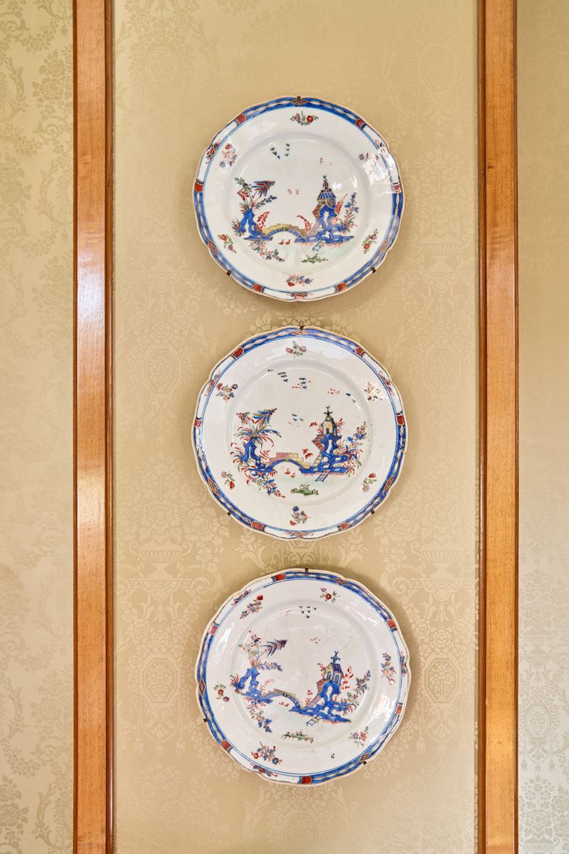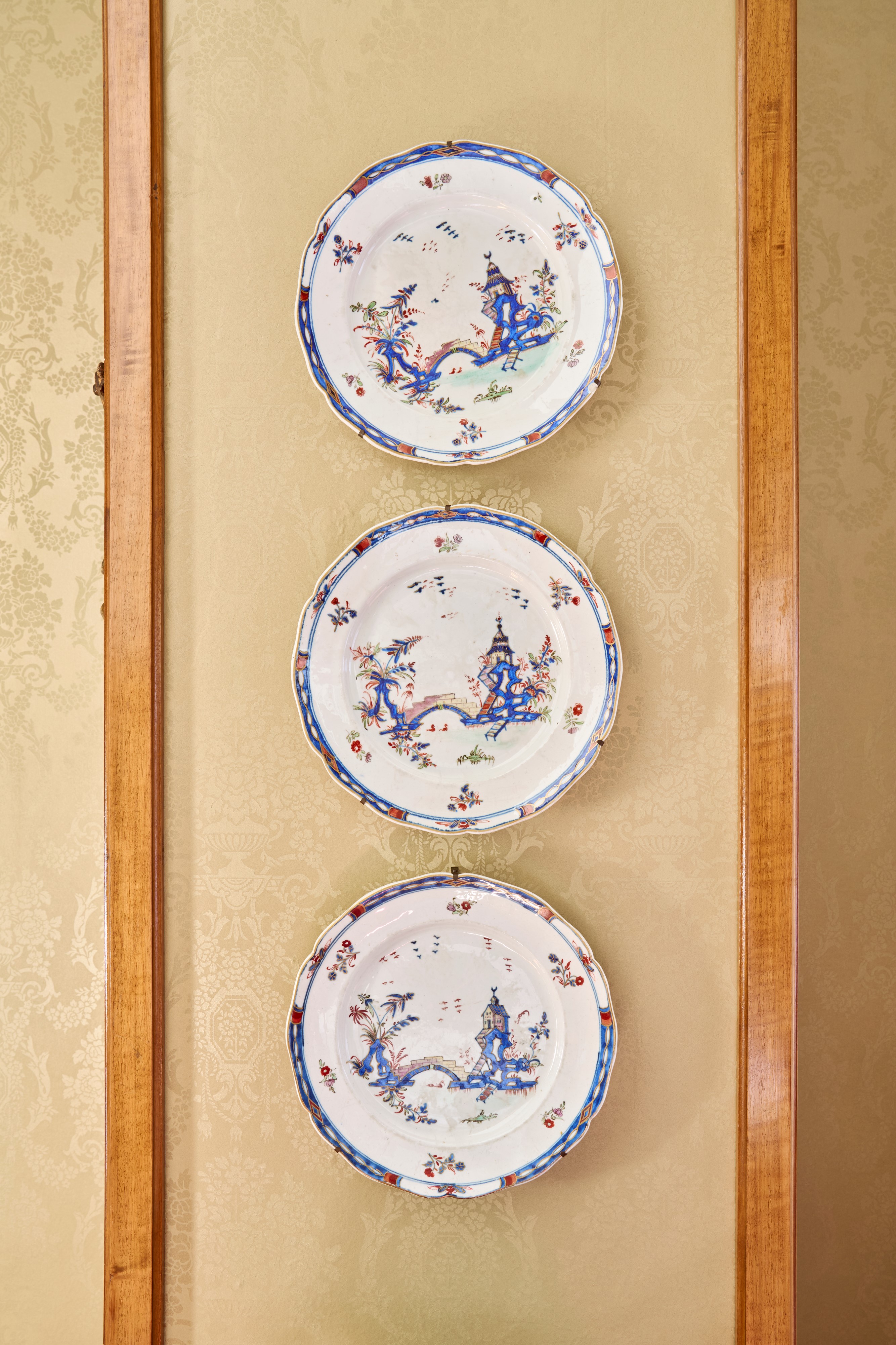 Sei piatti in porcellana a bordo polilobato e dorato con decoro a “ponticello”. Manifattura di Cozzi, Venezia, secolo XVIII