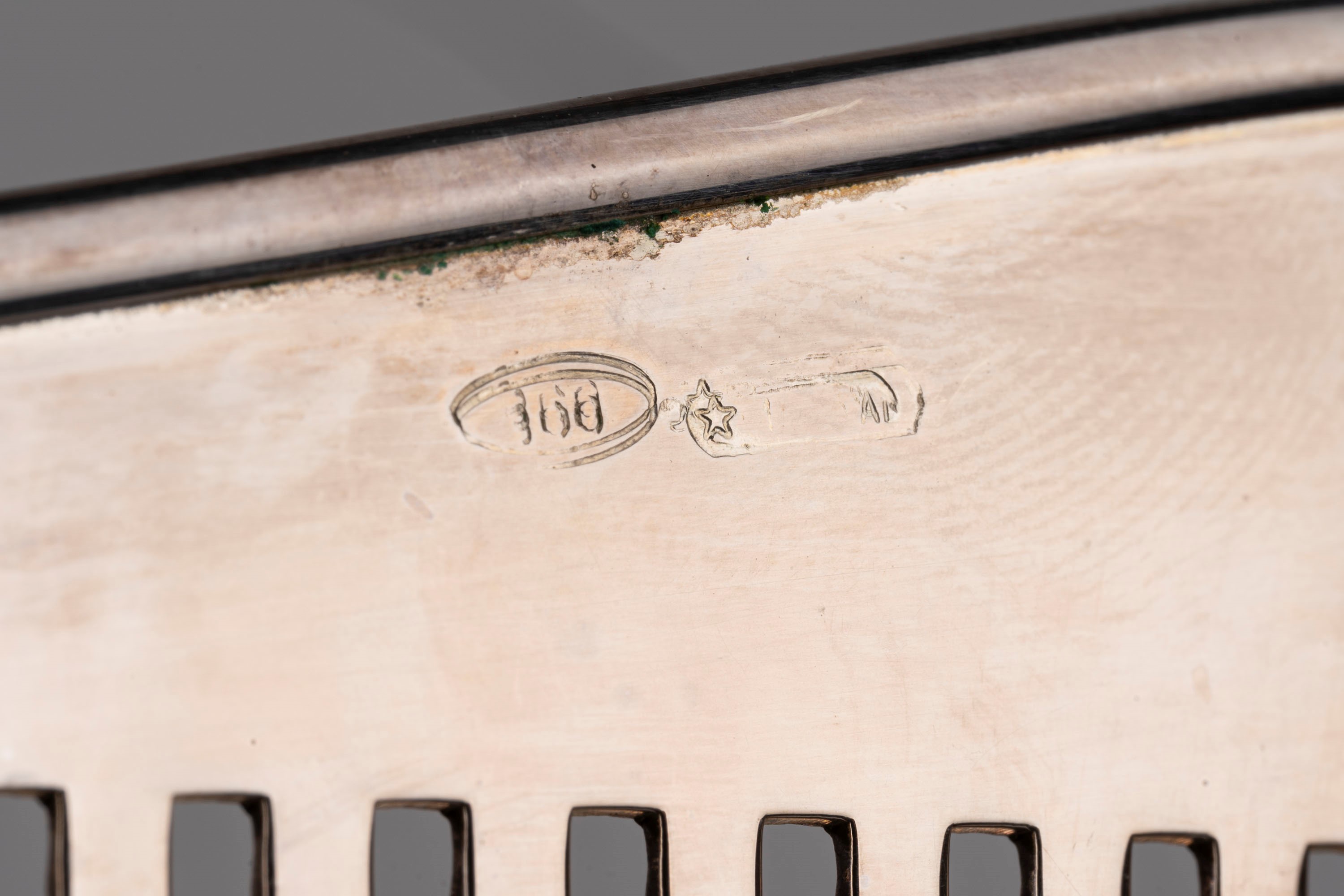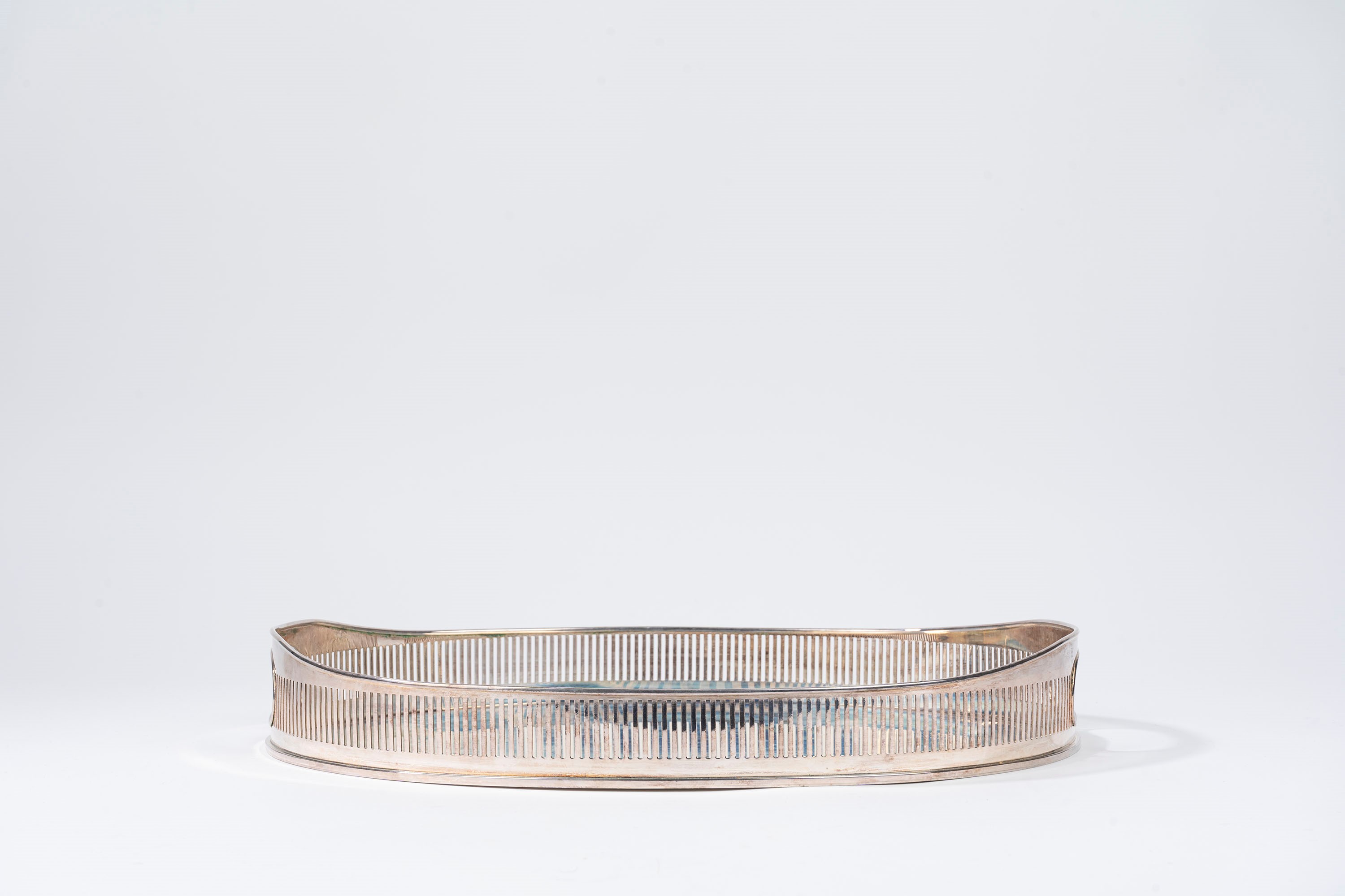in argentodi forma ovale, con bordo a ringhiera.