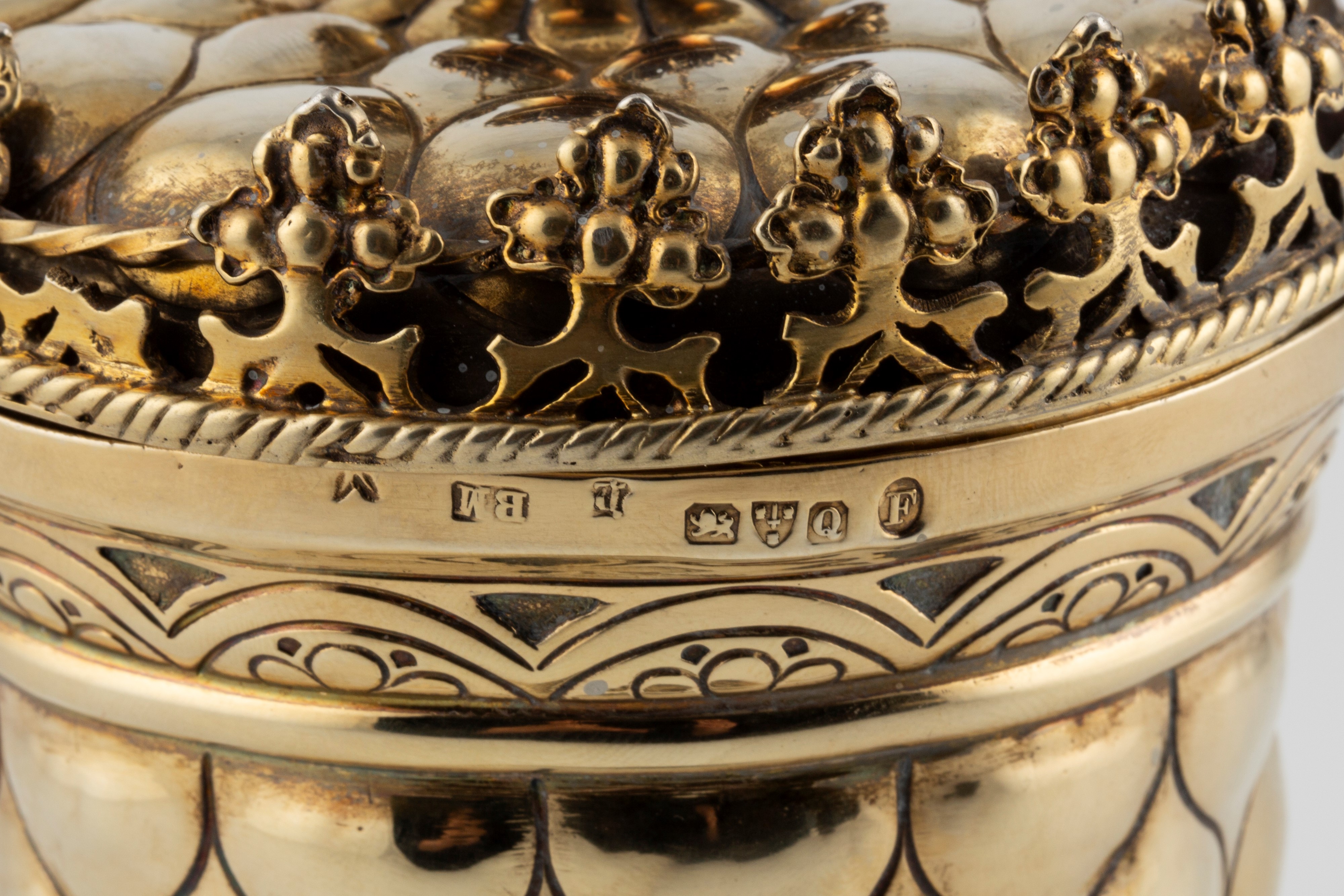 in argento e vermeilArgentiere BM (Berthold Muller?), punzoni di esportazione per Chester 1899,