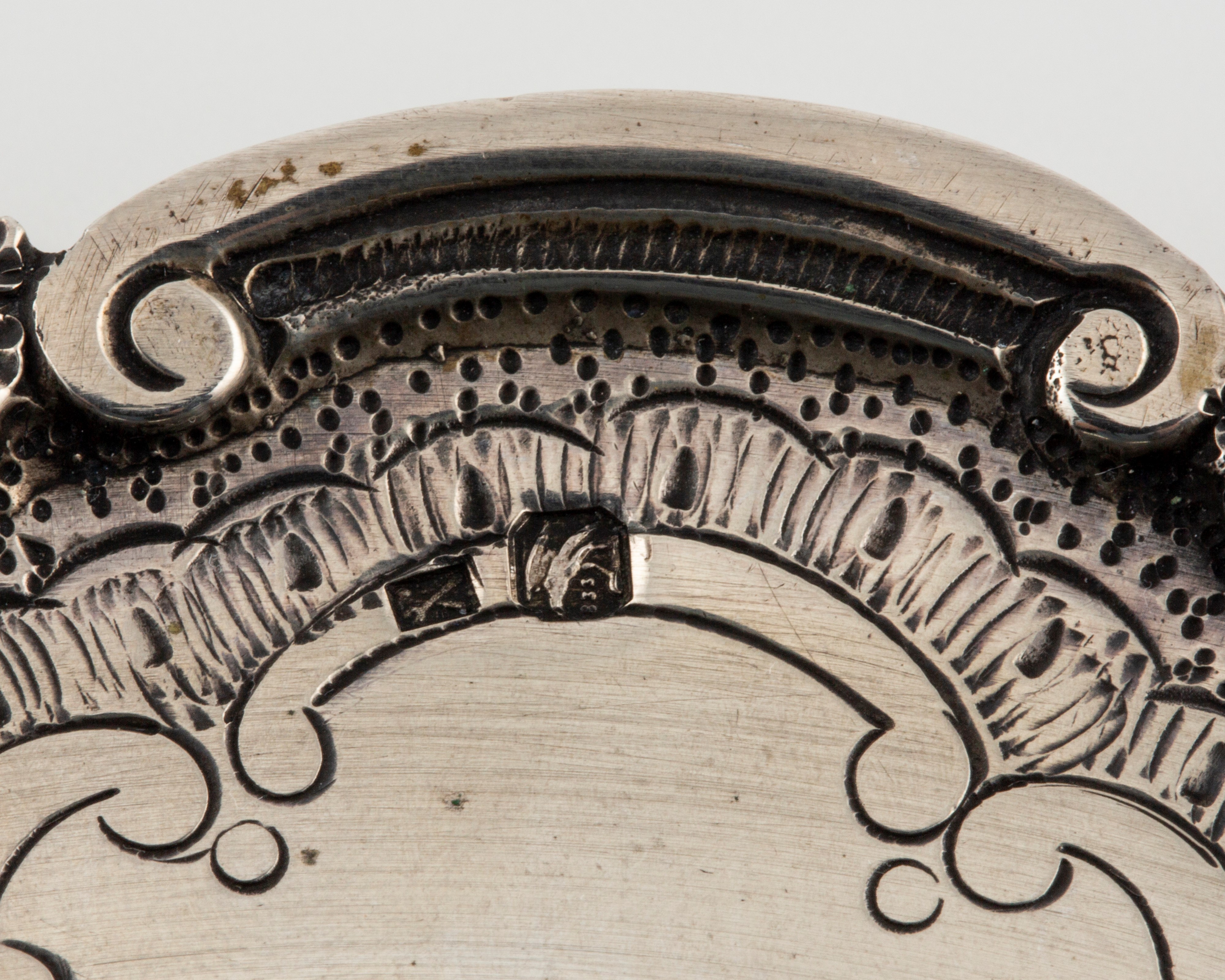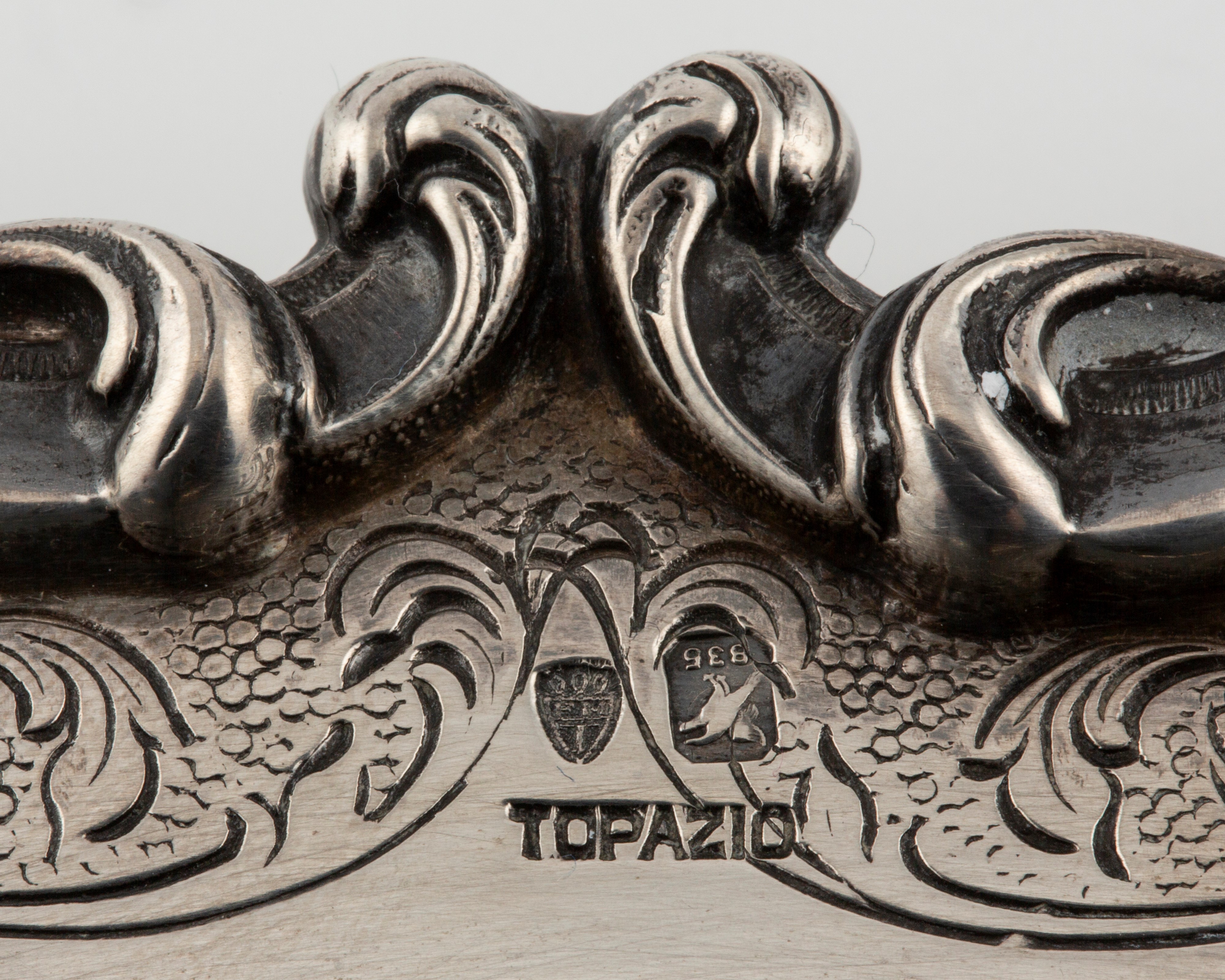 sbalzati e incisi a decori floreali e conchiglie.