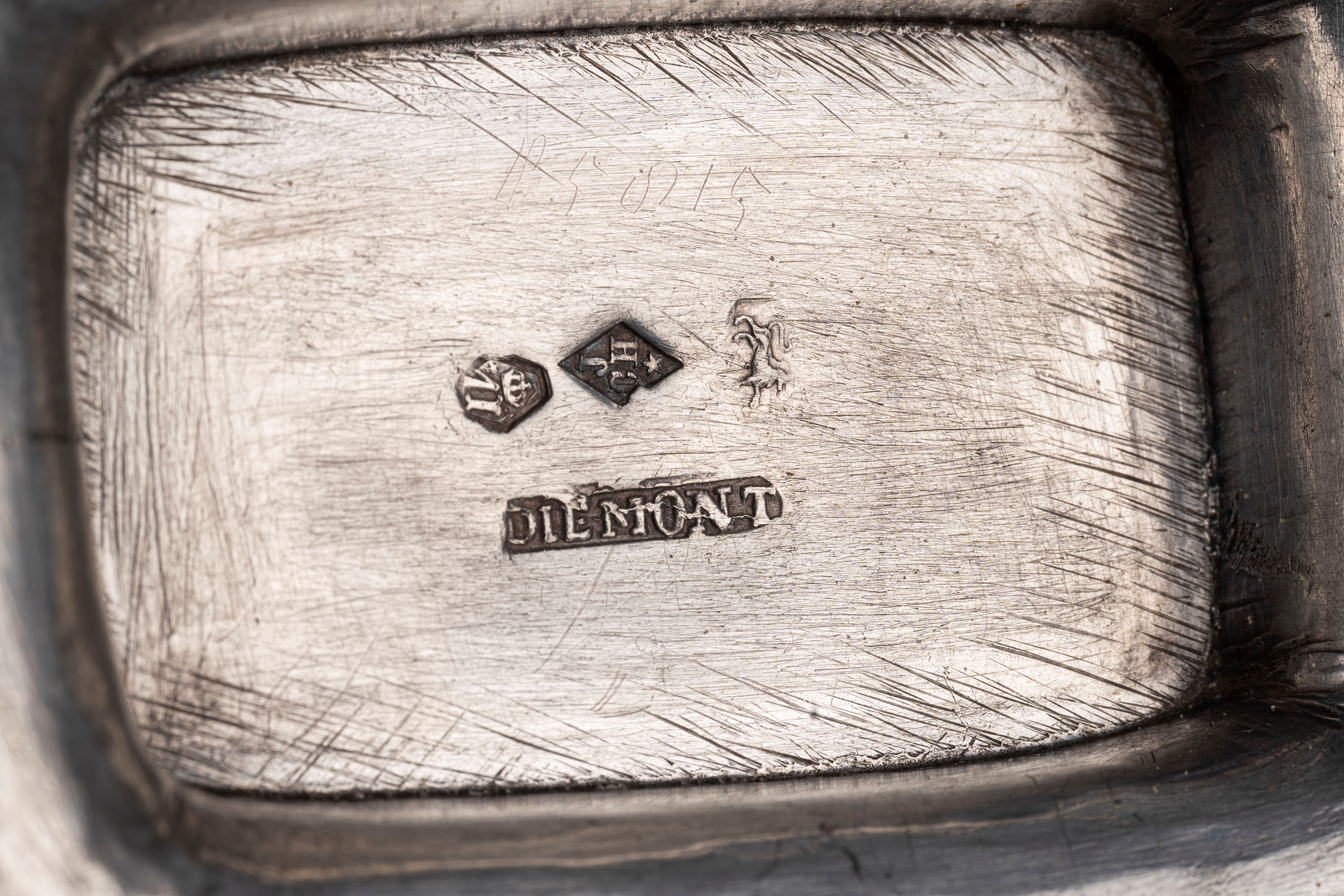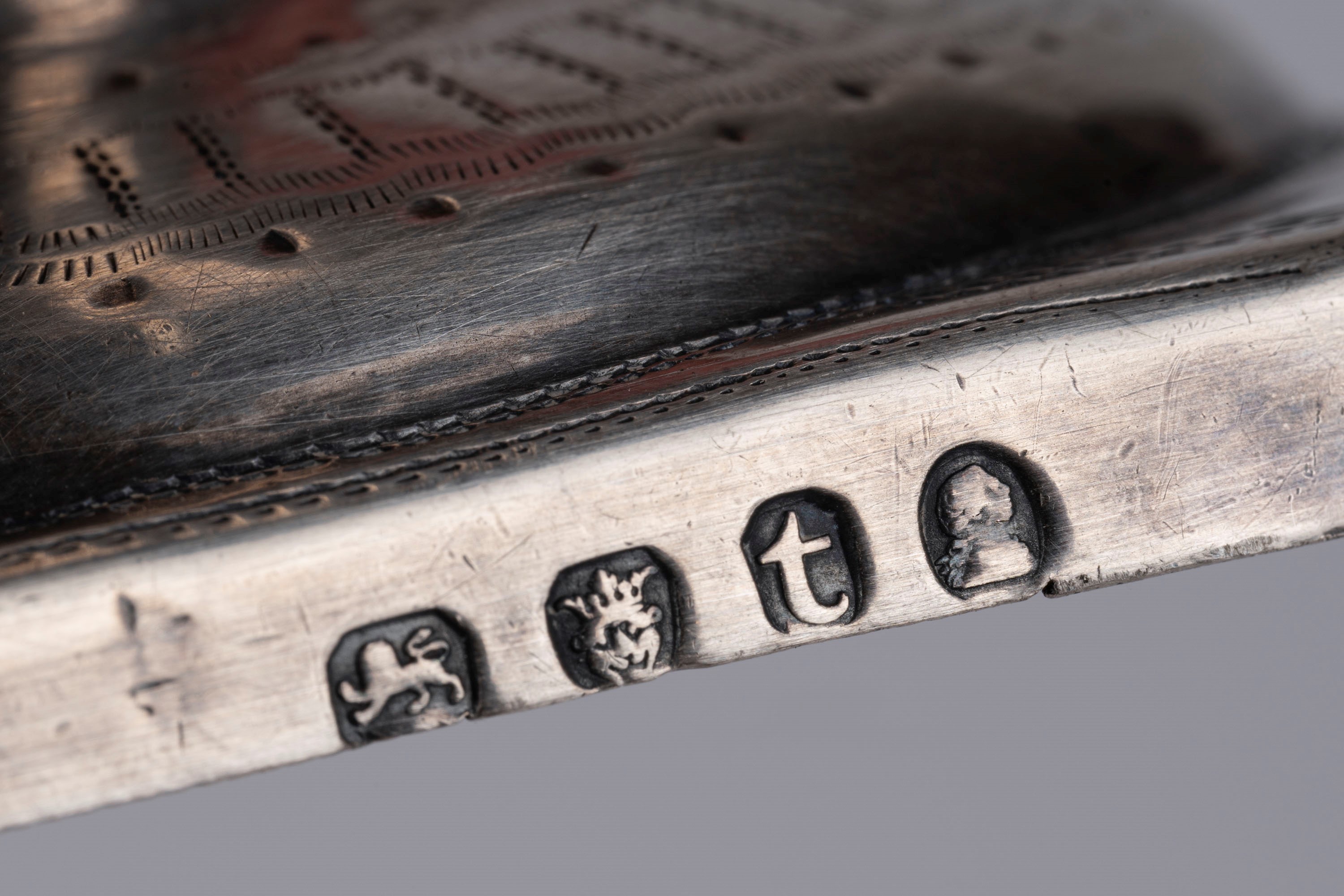 in argentouno argentiere JCH, marchio del rivenditore Diemont (Amsterdam), Olanda 1814, con fascia e bordo decorate a palmette; e uno Georgio III (marchi dell'argentiere non identificati), Londra 1834, con corpo e bordo incisi con ghirlande e stemma.