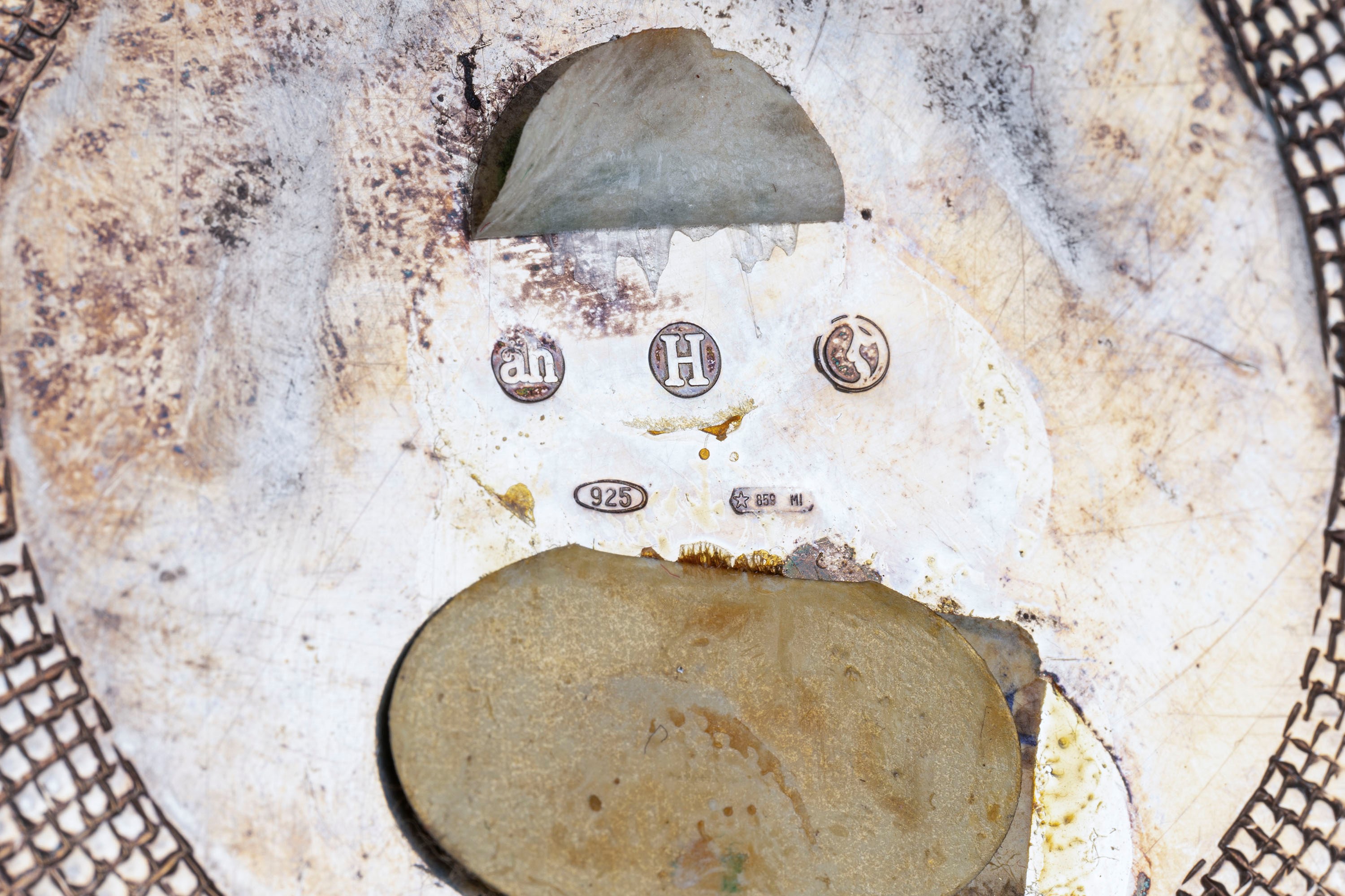 in argento 925di forma circolare decorata a maglia a spirale, punzoni dell'argentiere alla base.