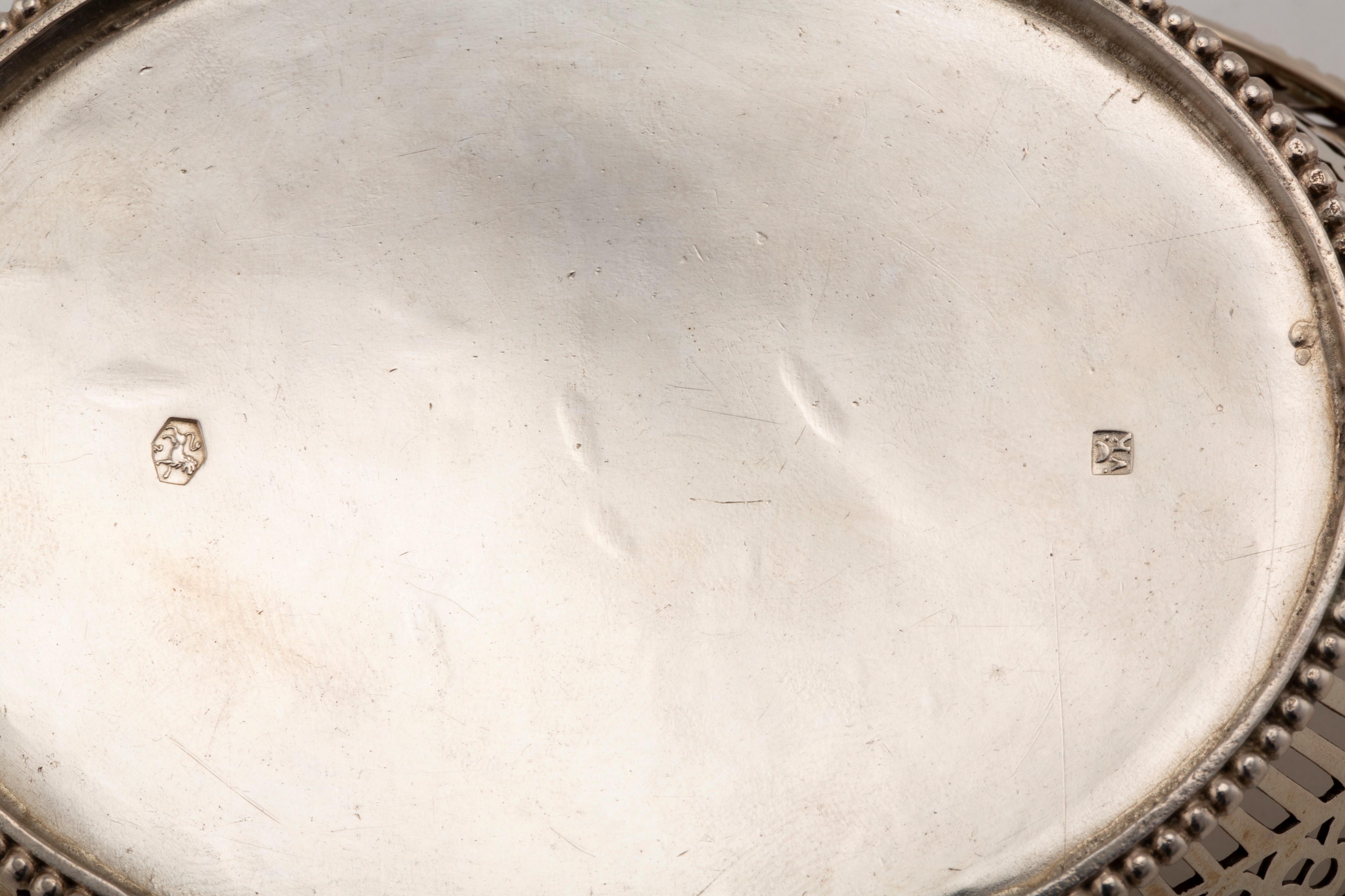 il cestino reticolato con punzone VK (Fa. J.M. van Kempen & Zoon (Son) (l cm 13,00); i sale e pepe a forma di pesciolini (l cm 6,50).