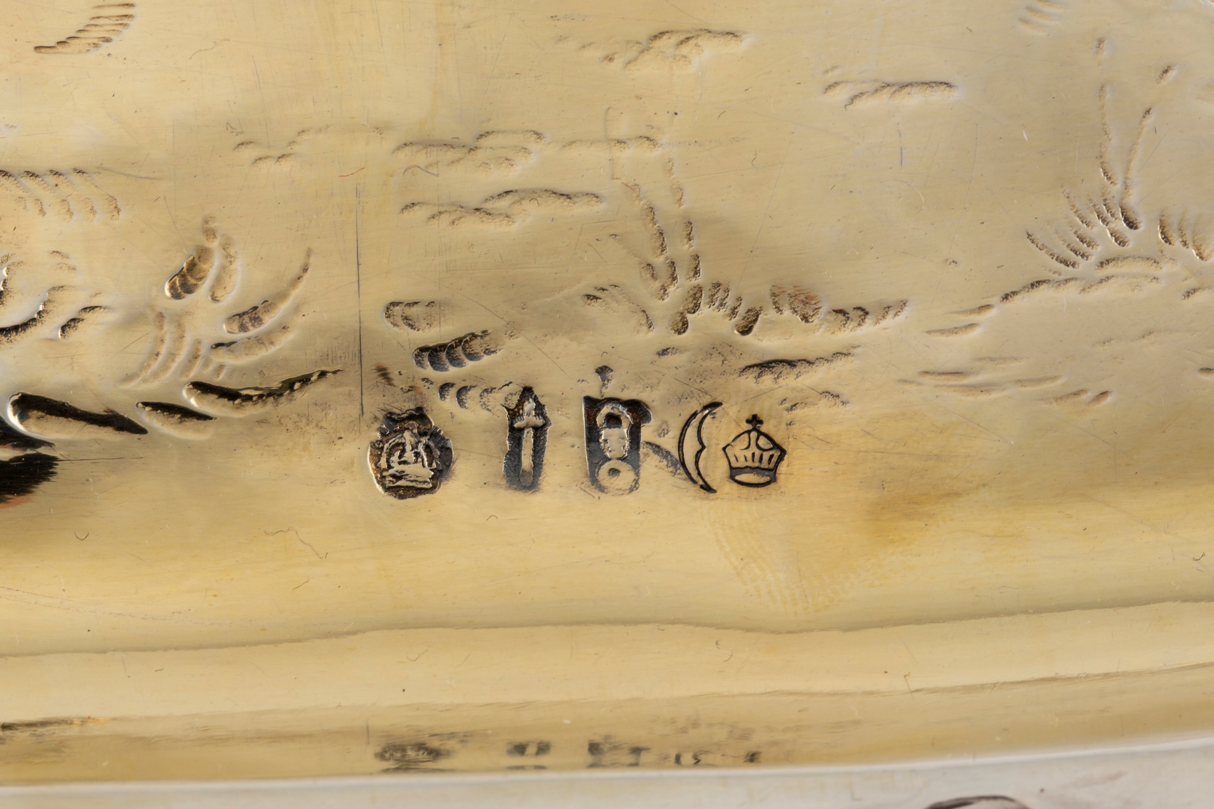 in argento e vermeilfinemente sbalzato con "La creazione di Adamo" di Michelangelo, il bordo decorato con motivi floreali e fogliacei.