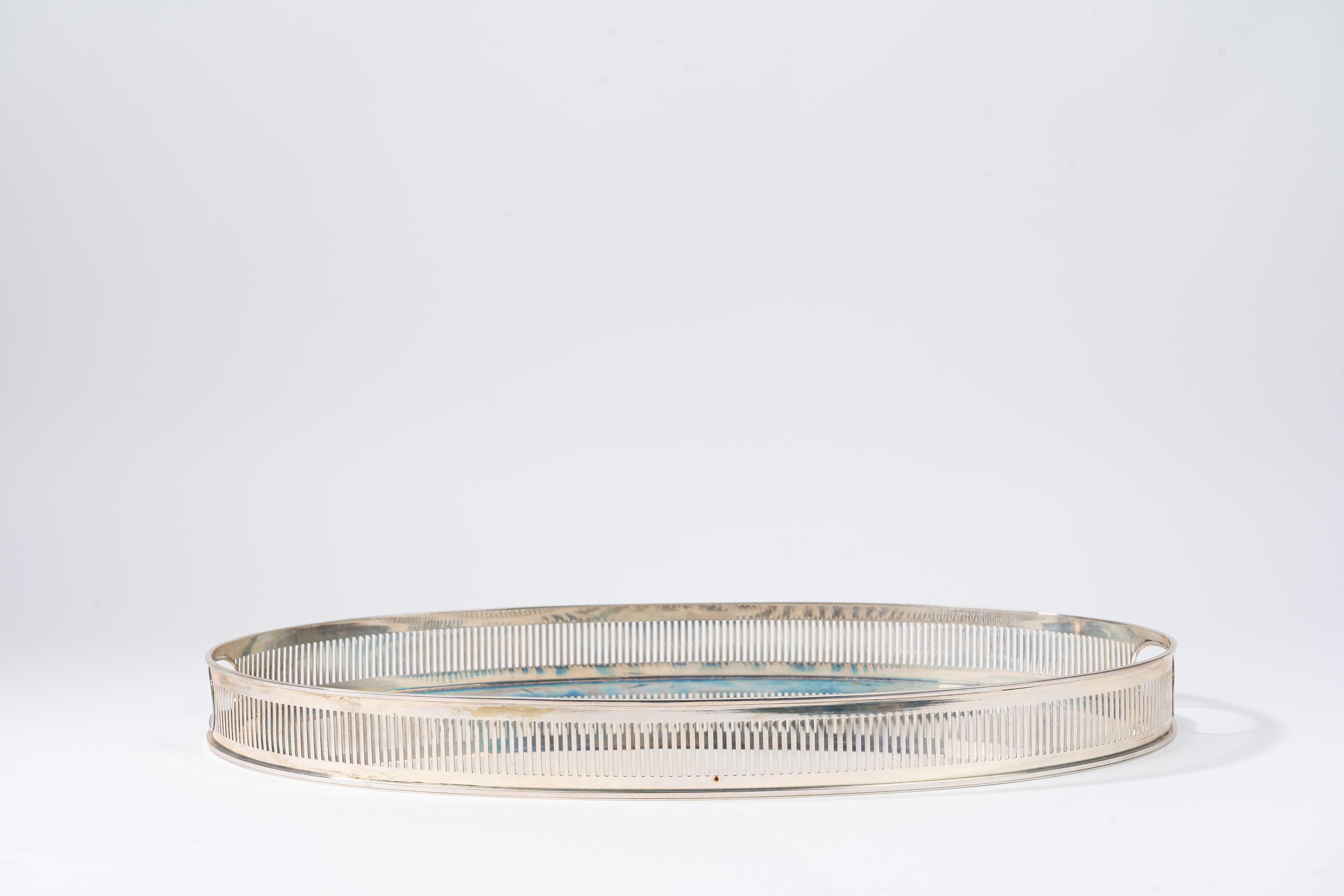 di forma ovale a doppio manico con bordo a ringhiera.