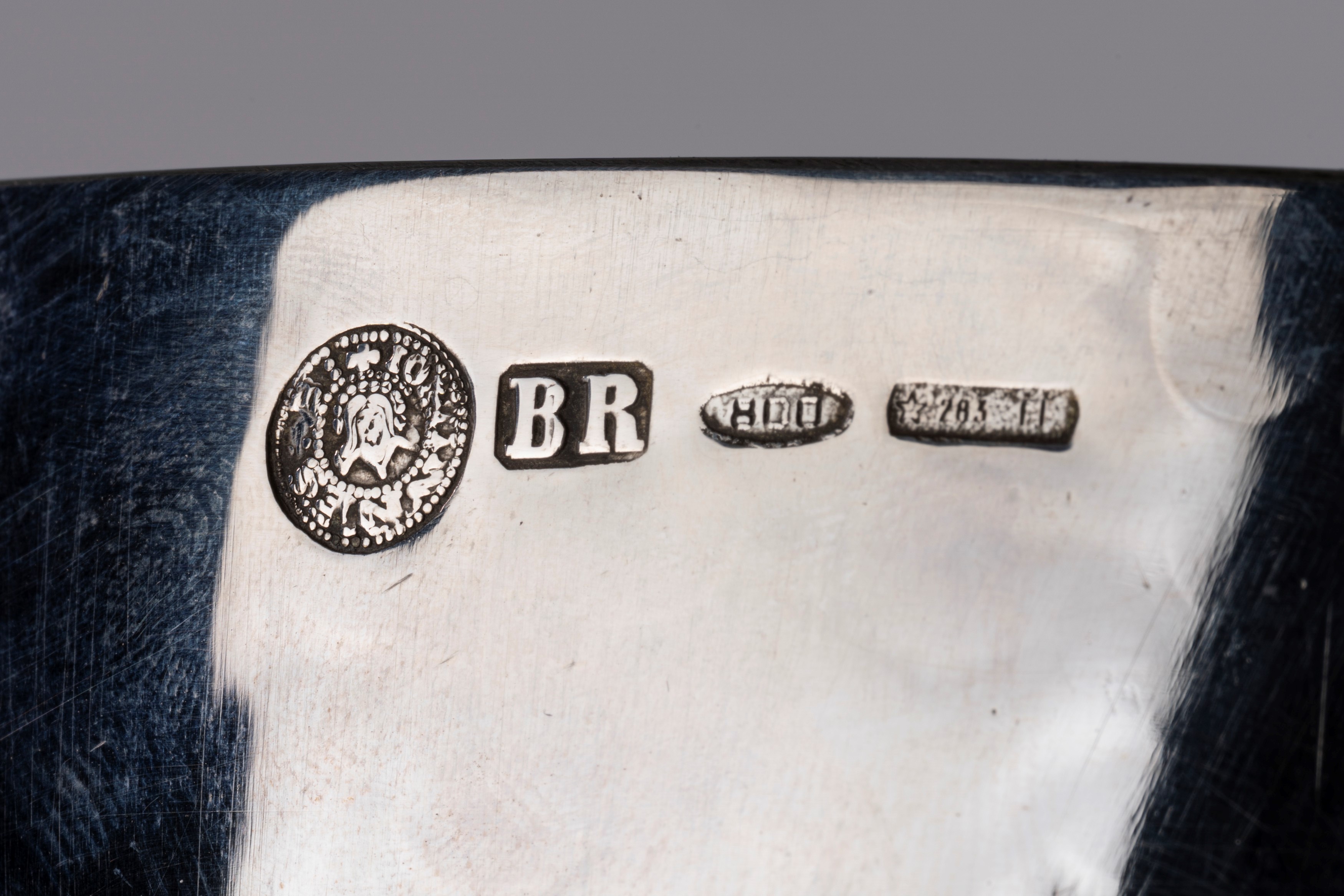 in argentocon corpo leggermente martellato, decorato con bugnature sbalzate.