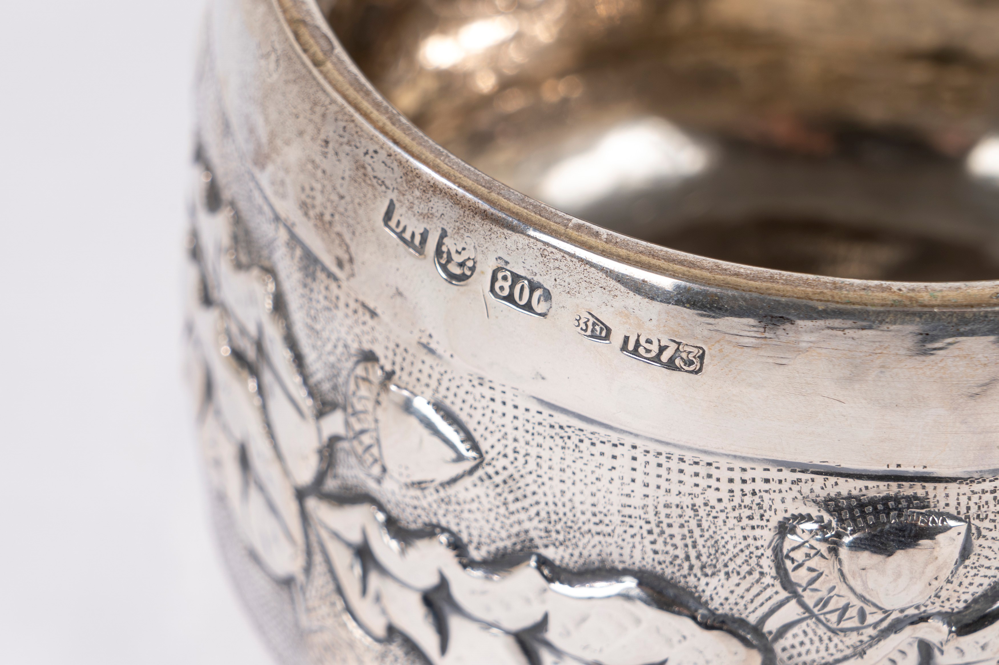 in argentocon corpo sbalzato a fascia di foglie con ghiande.