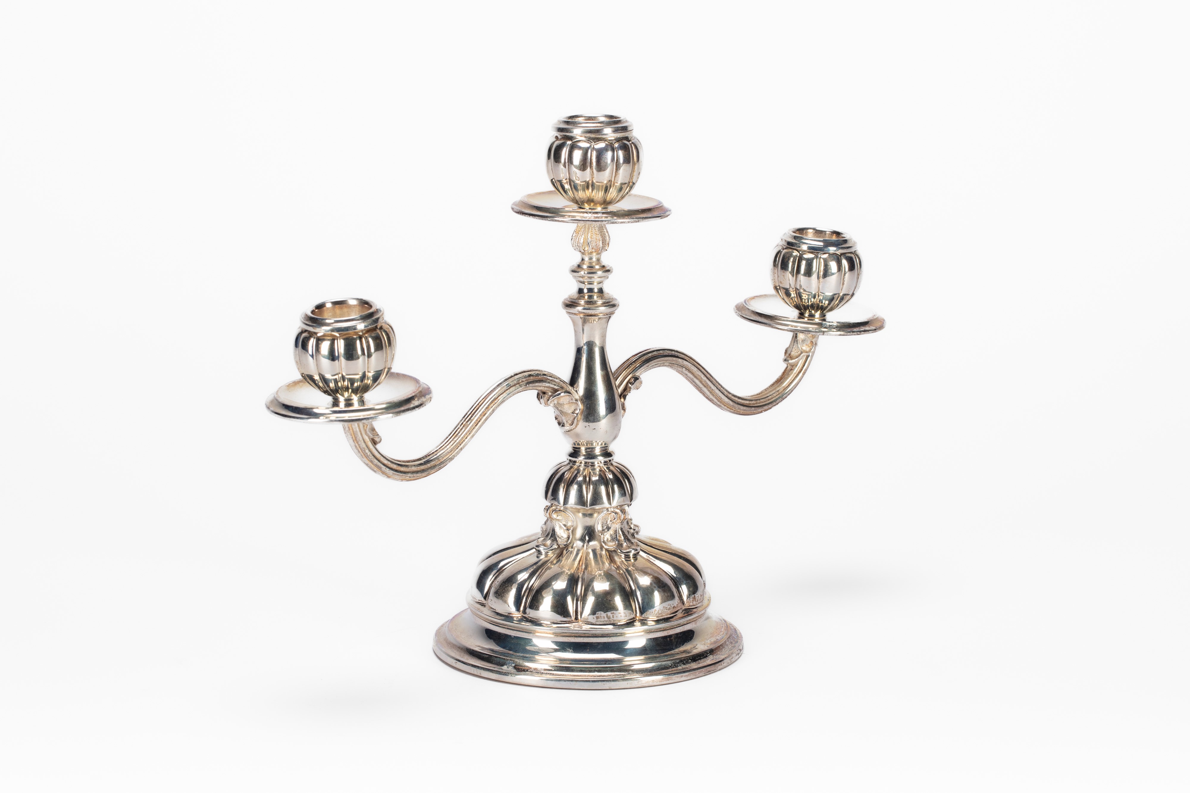 a tre braccia sagomate, base sbalzata con decoro a piccoli fregi.