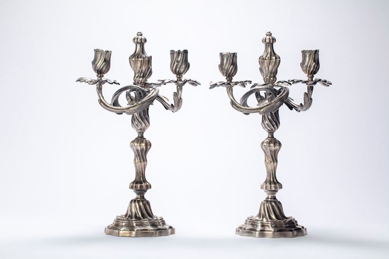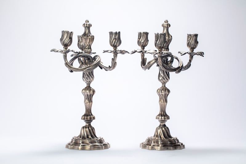 Coppia di candelabri a tre braccia, Francia, inizi secolo XX