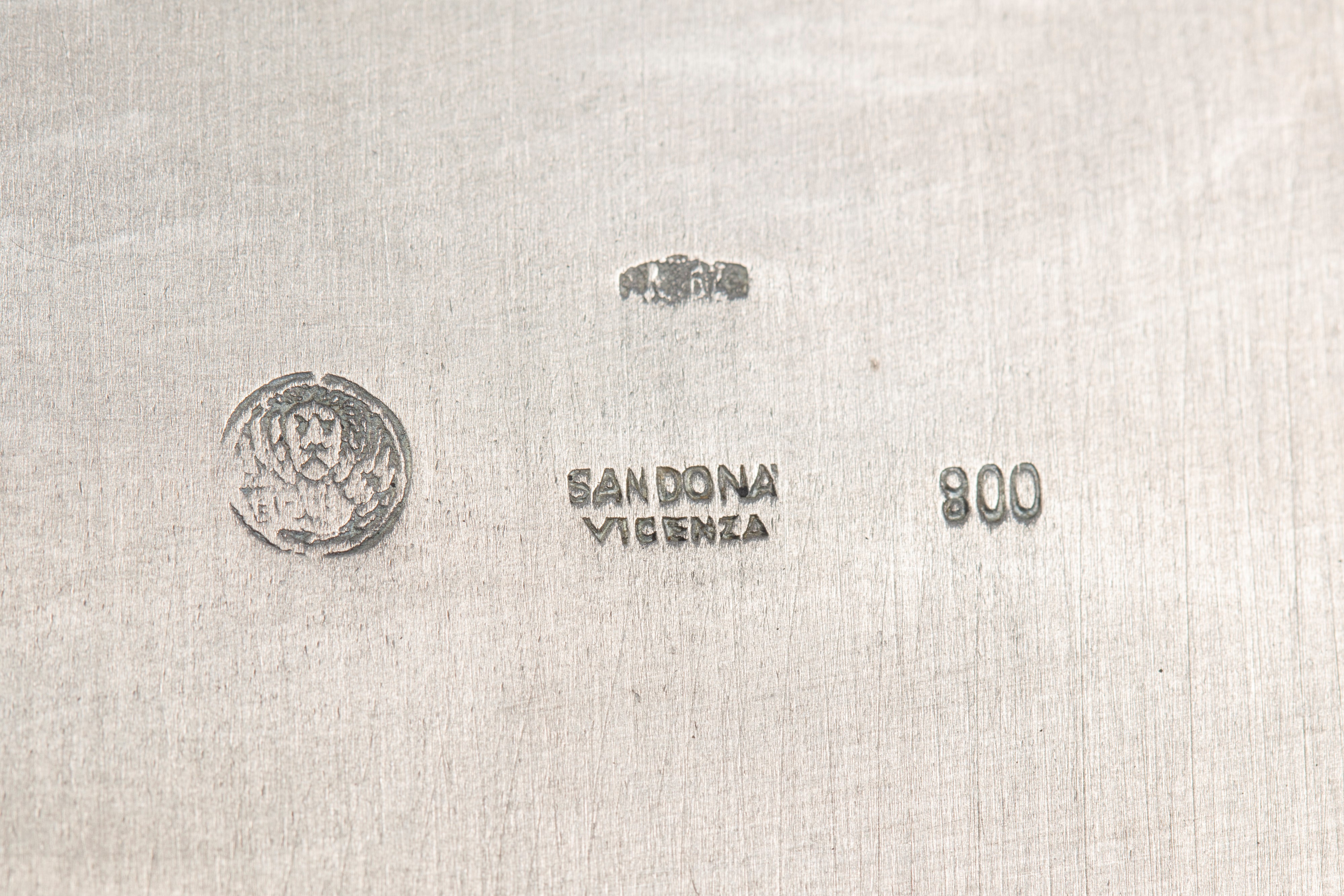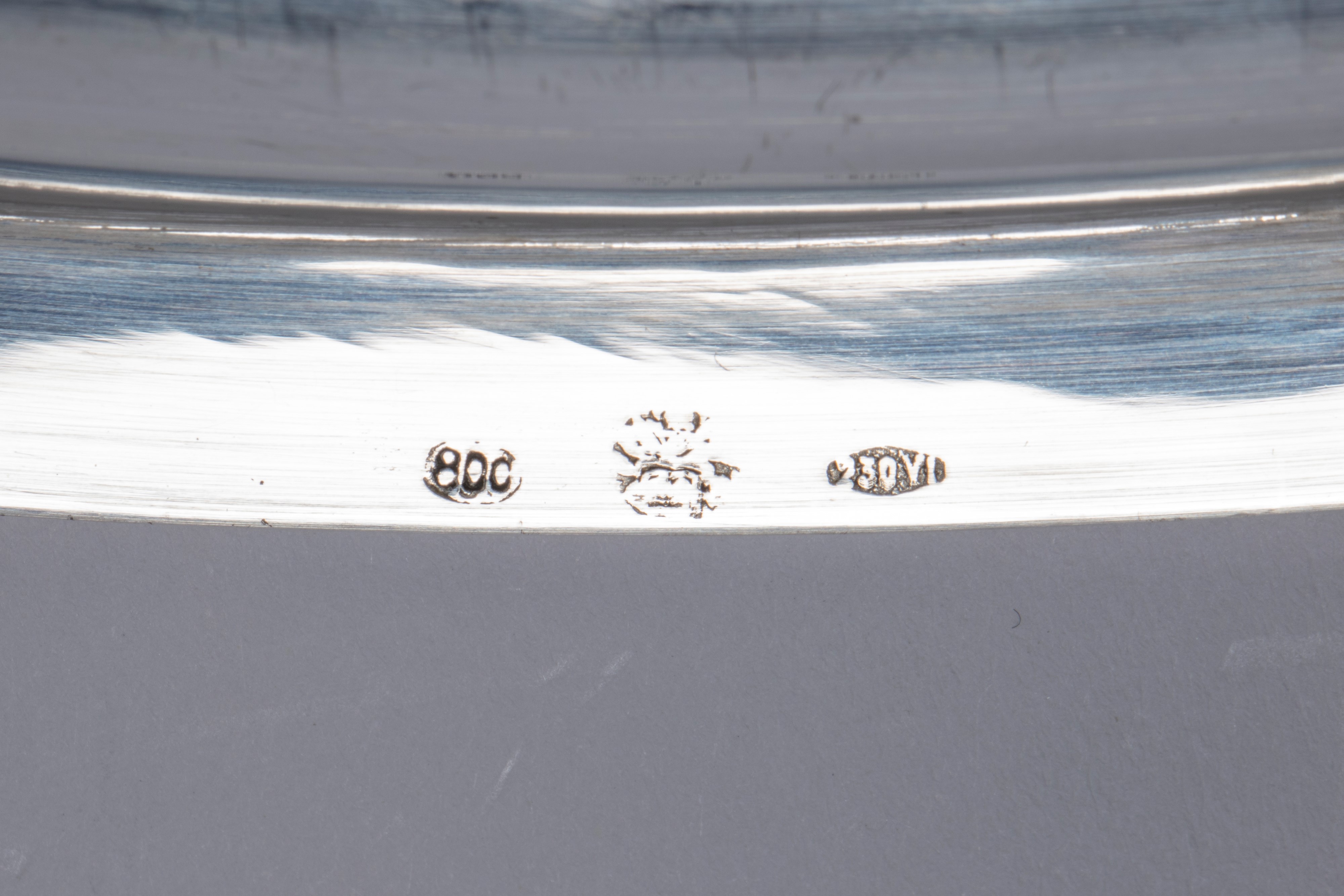 in argentocavetto liscio e bordo a motivo geometrico cesellato.
