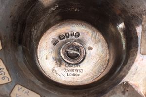 in argentoArgentiere John Crane Salt e marchio del negozio Lambert, Coventry St. London, alla base,