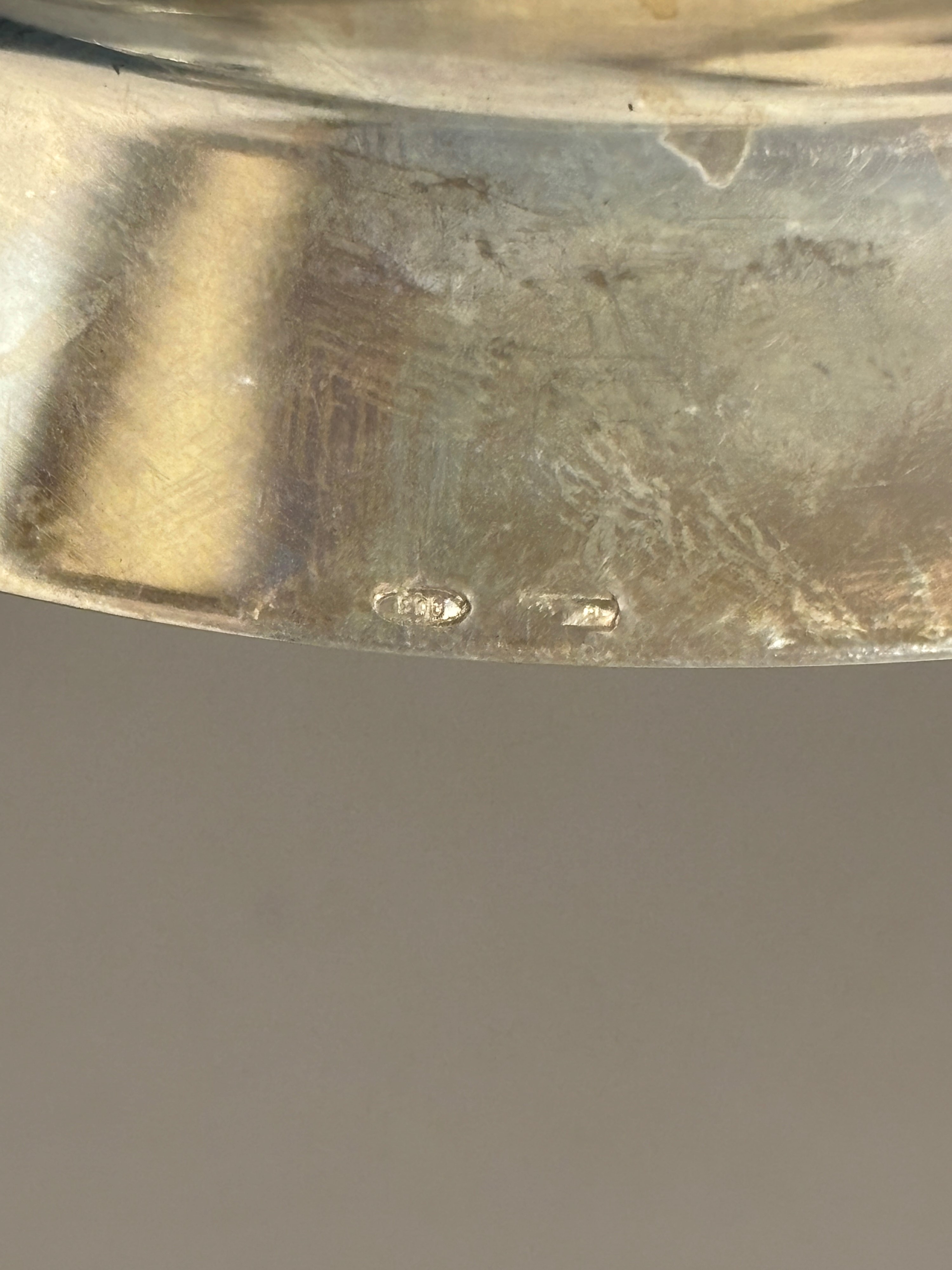 in argentodi forma tonda a corpo liscio, con coperchio con presa sagomata.