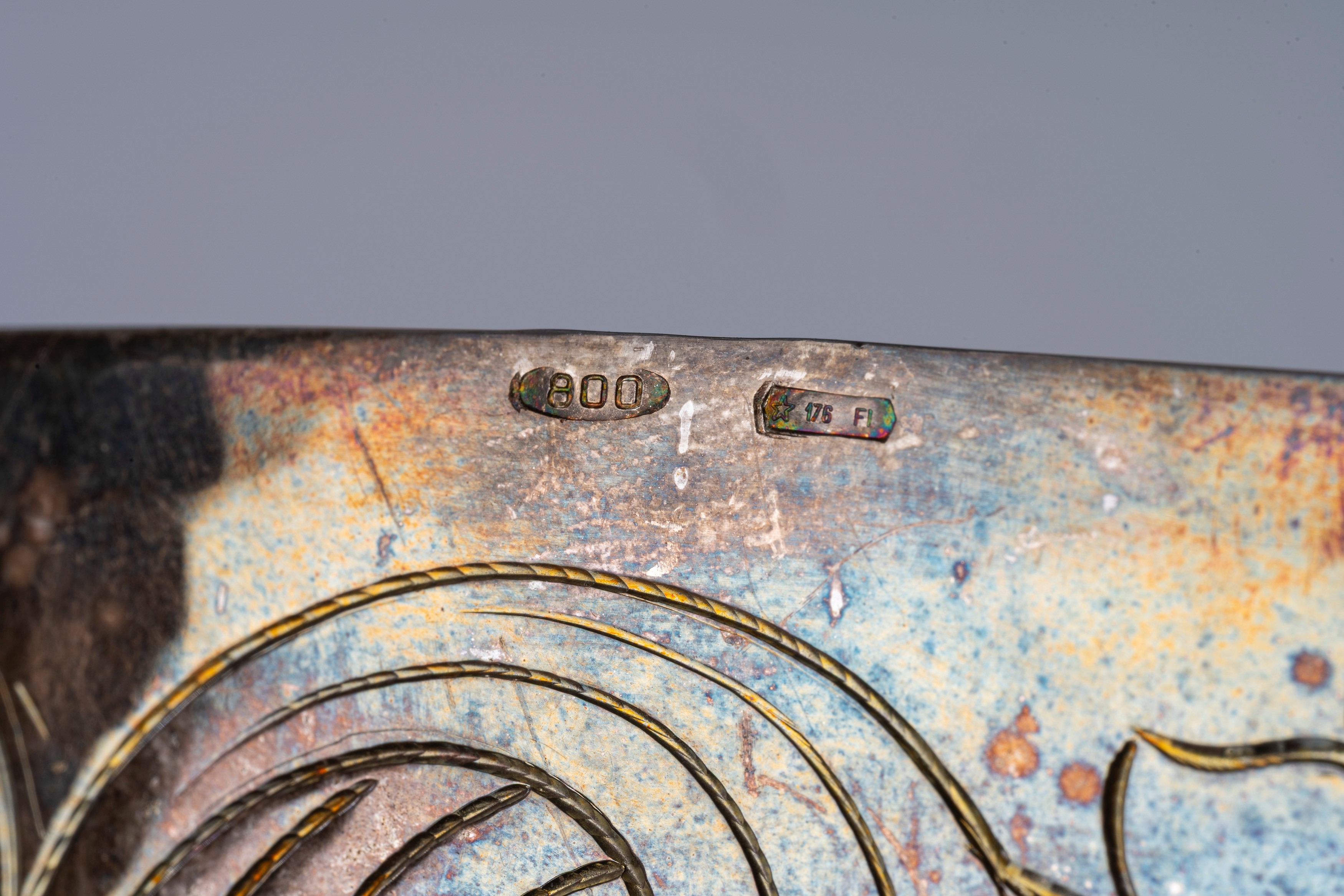 in argento e vermeilcon interno in vermeil, fascia incisa con festone e motivo romboidale.