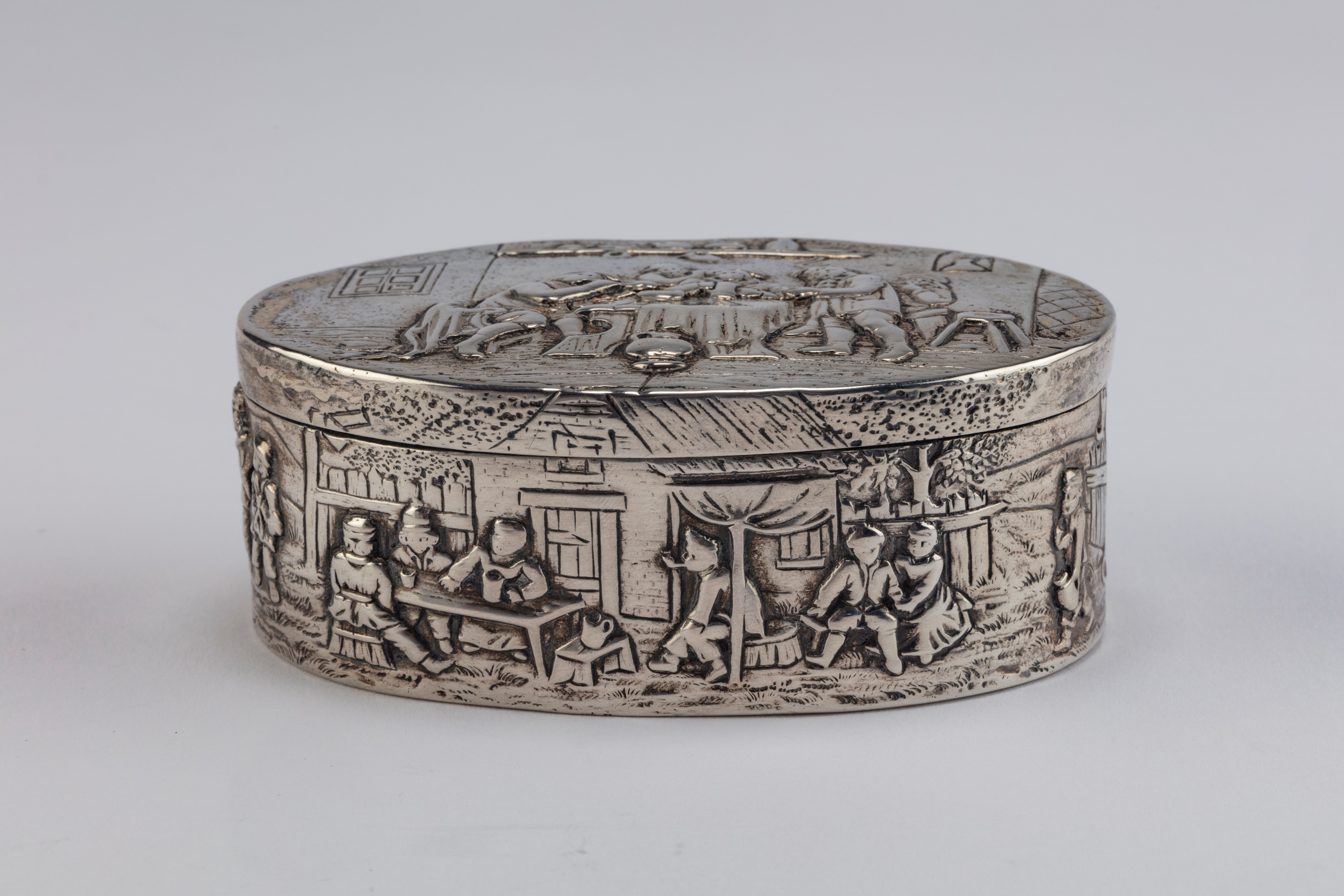 in argentocon coperchio incernierato e decoro inciso e a rileivo.