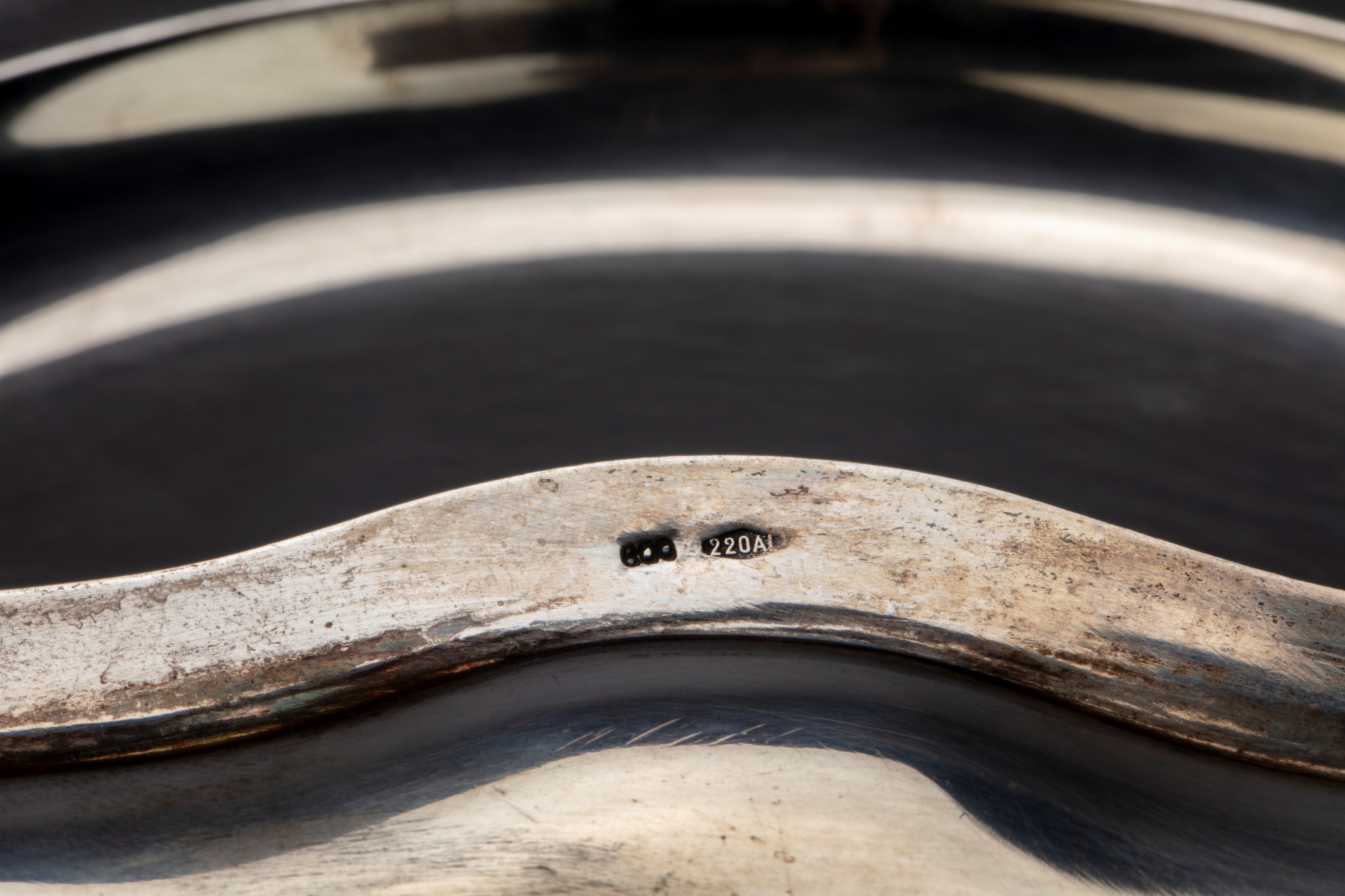 in argentocon cavetto liscio, bordo sagomato e scanalato.