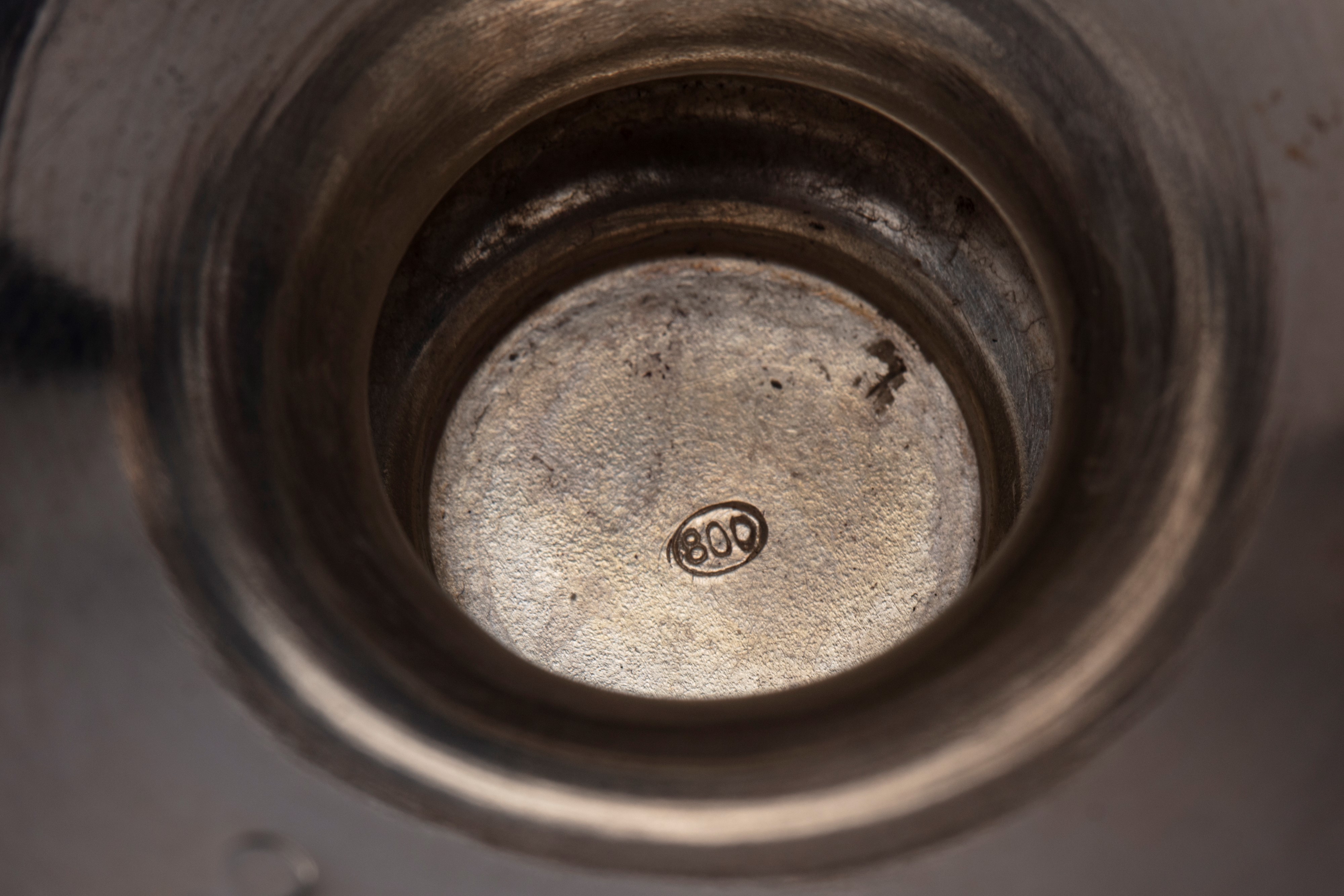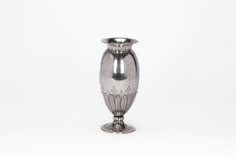 in argentoa corpo bombato decorato con incisioni e cesellature stilizzate. (Difetti).