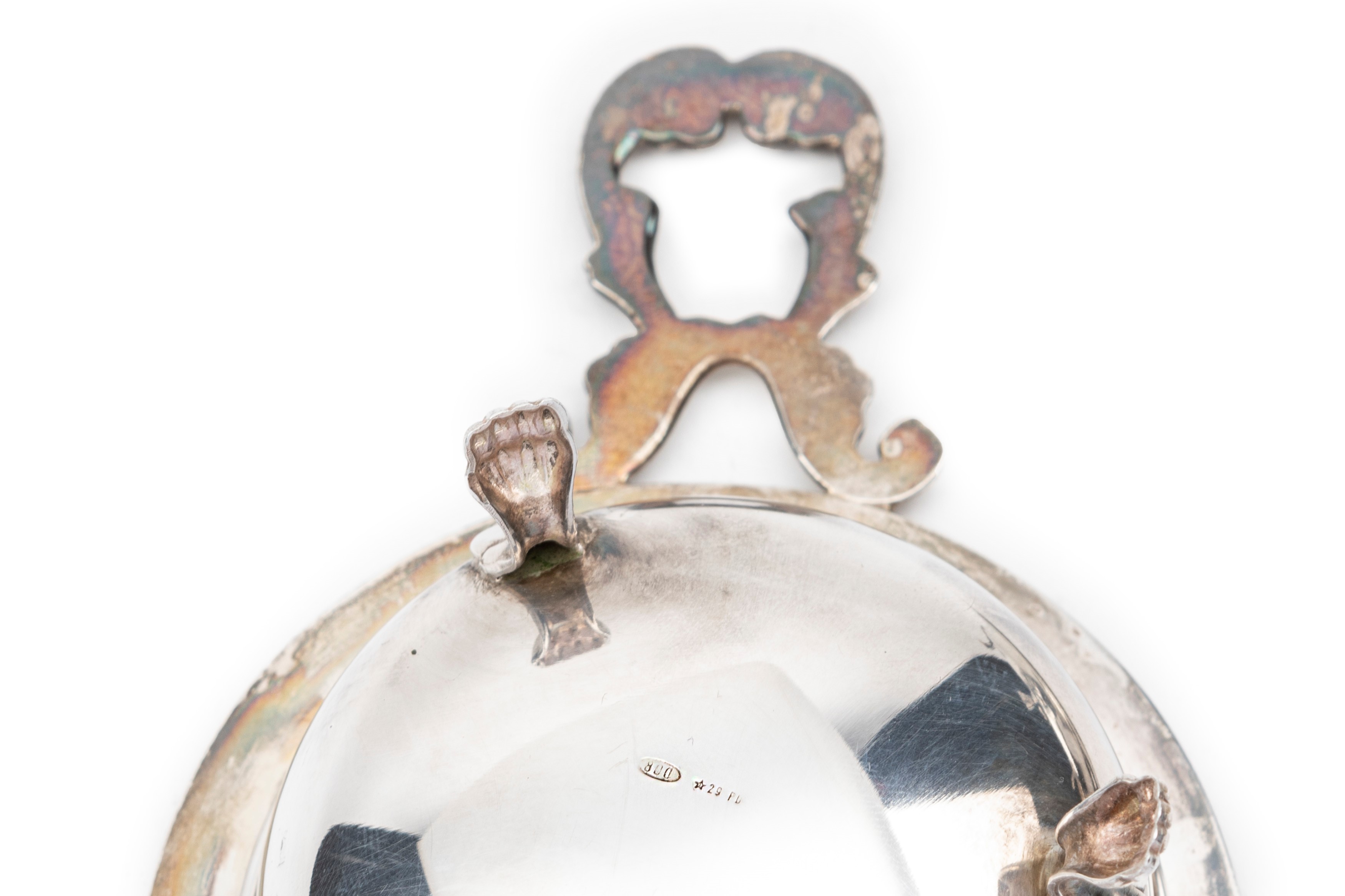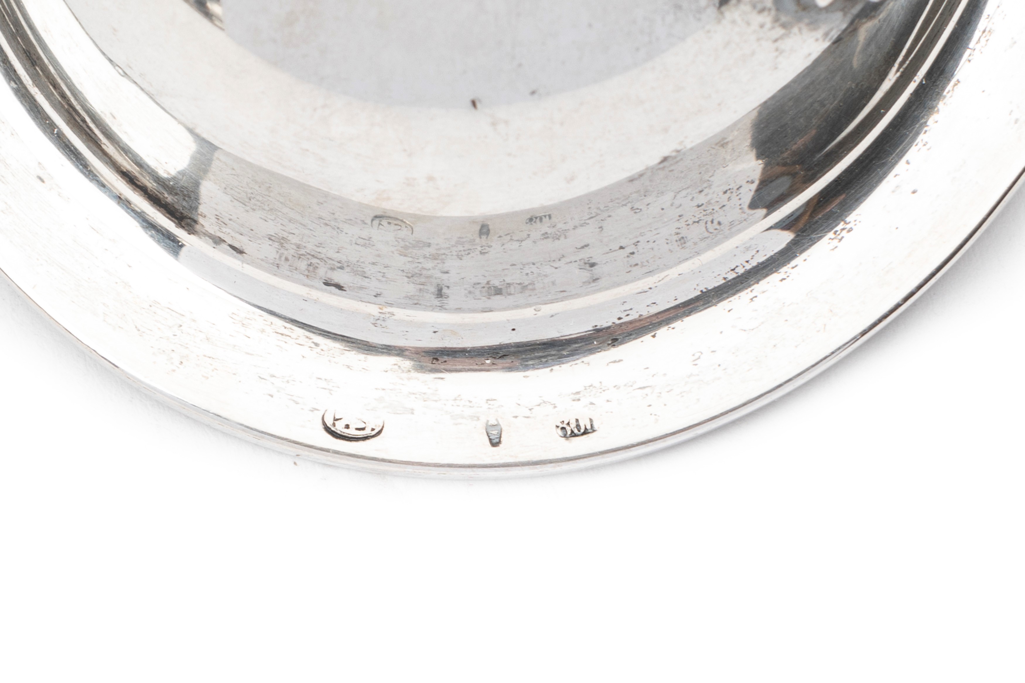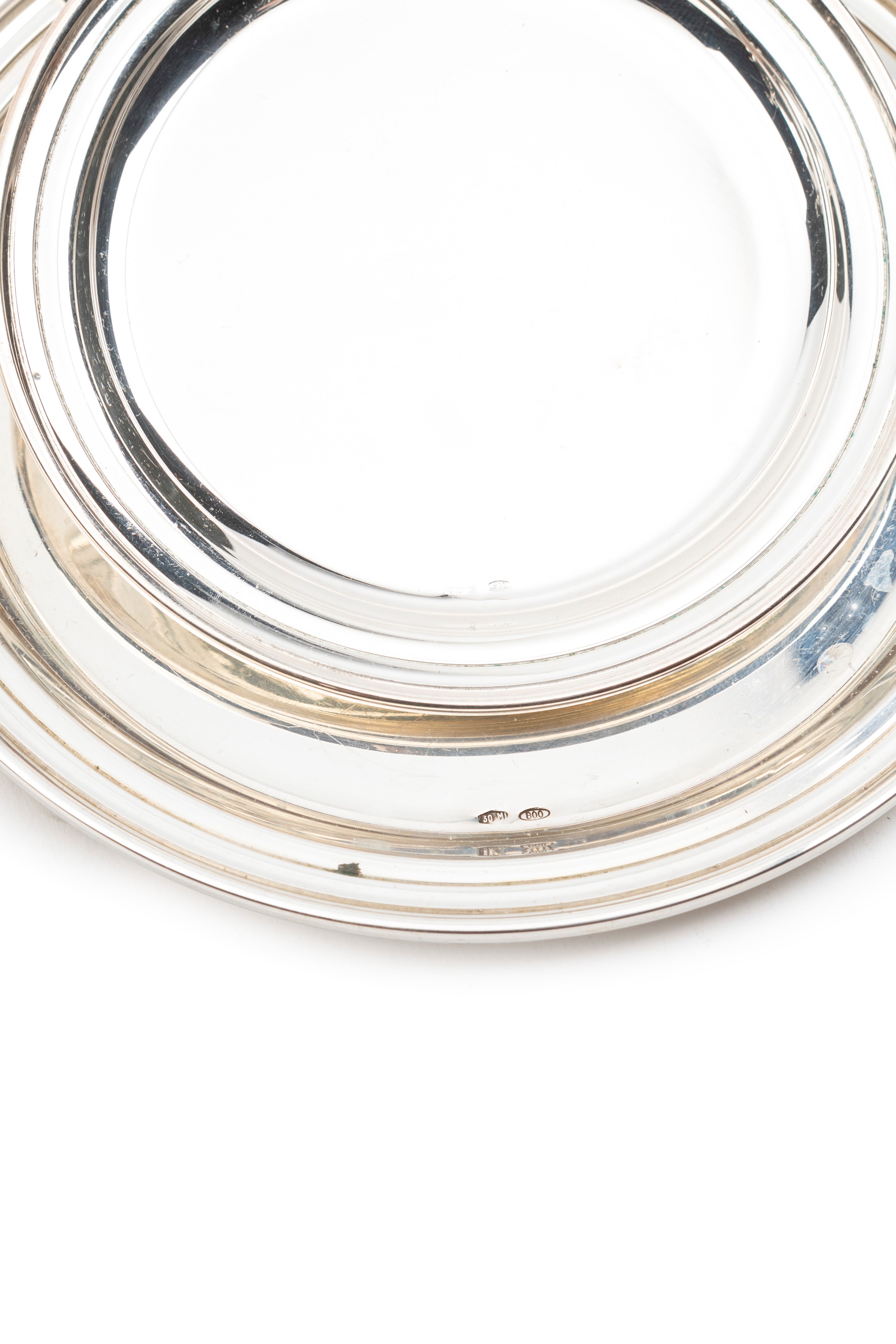 in argentocomposto da un vassoio ovale, dodici piattini pane, sei sotto bicchieri, tre ciotole ovali, un colino.