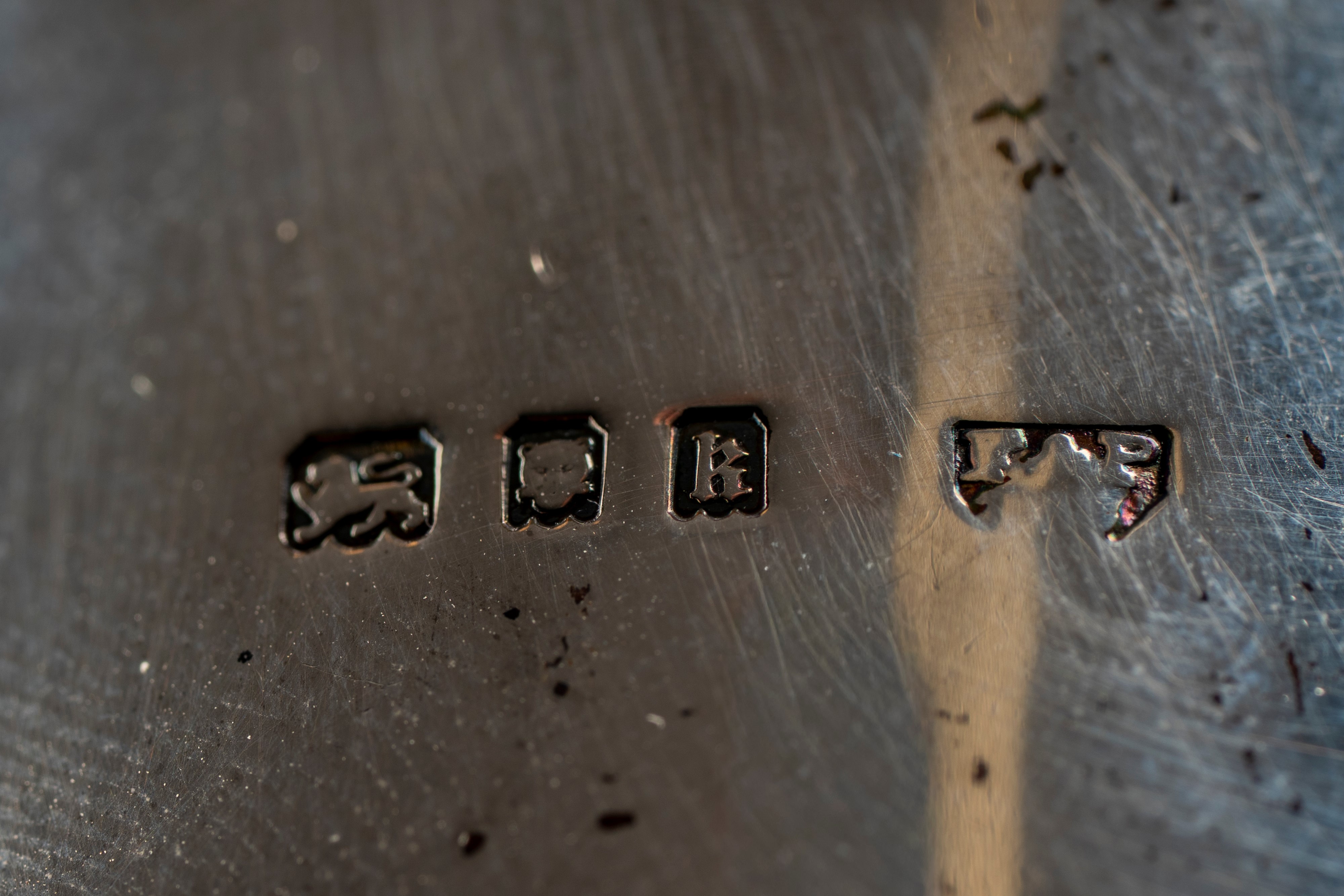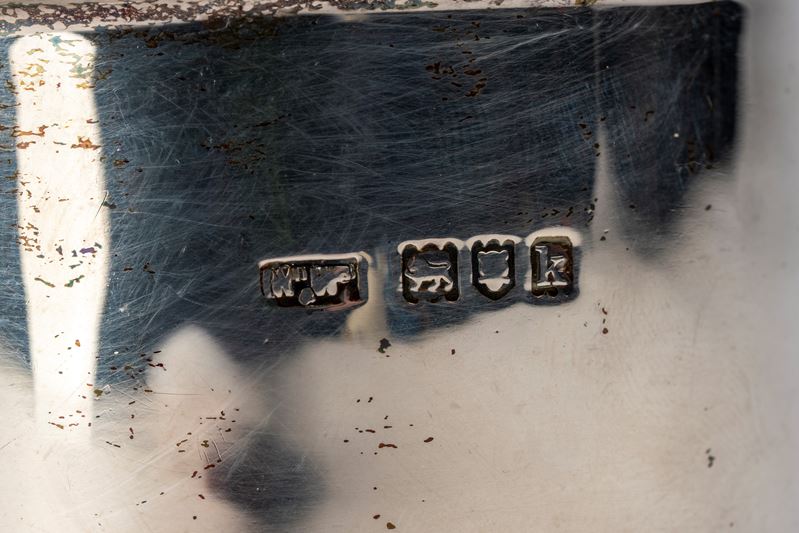 in argentoa corpo liscio di forma cilindrica con profili decorati a scanalature, parte superiore con coperchi.