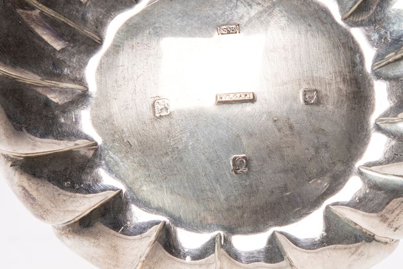 in argento 925di forma circolare sbalzato a fiore stilizzato