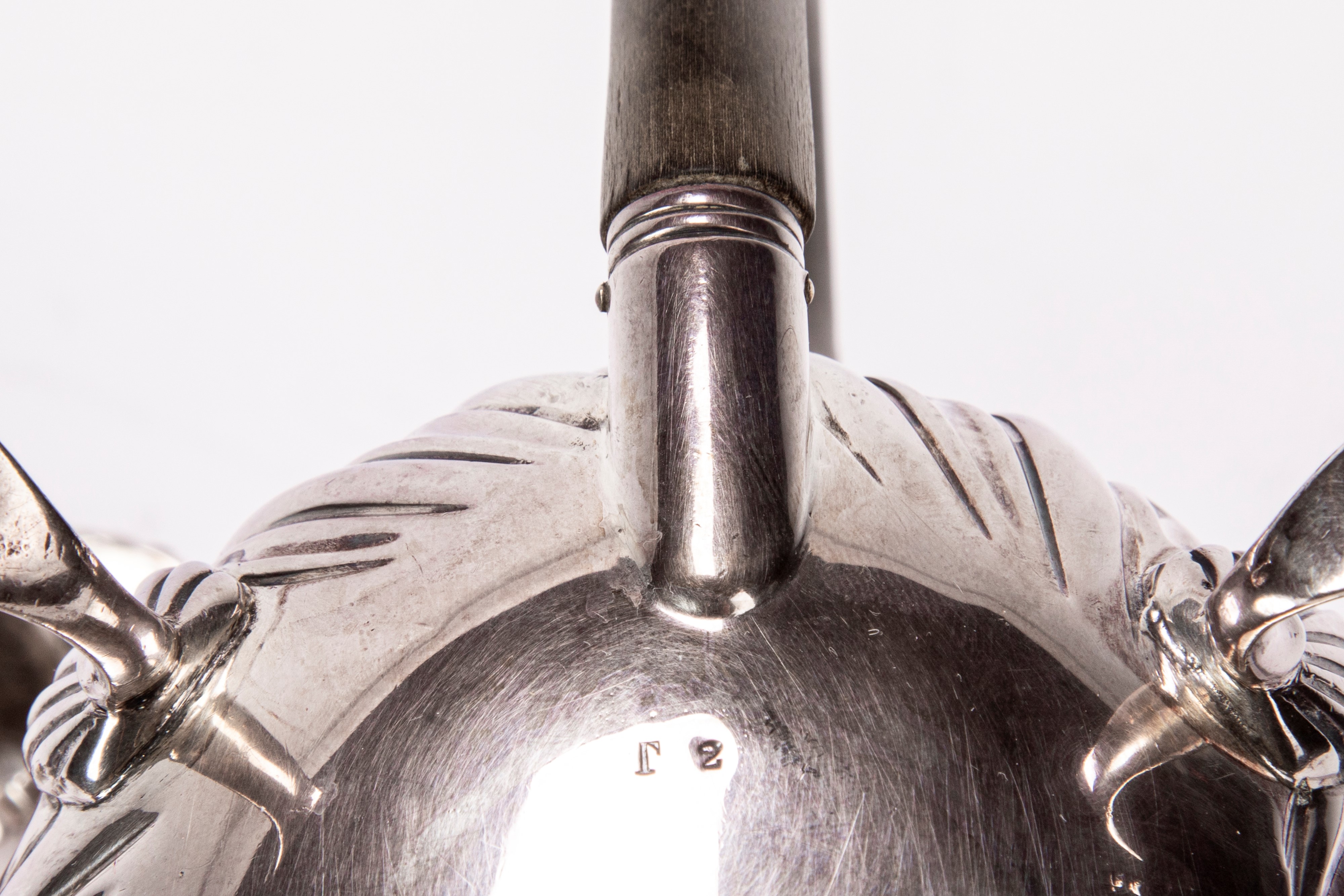 Beccucci mossi, prese in legno sagomato. Piedini curvi.