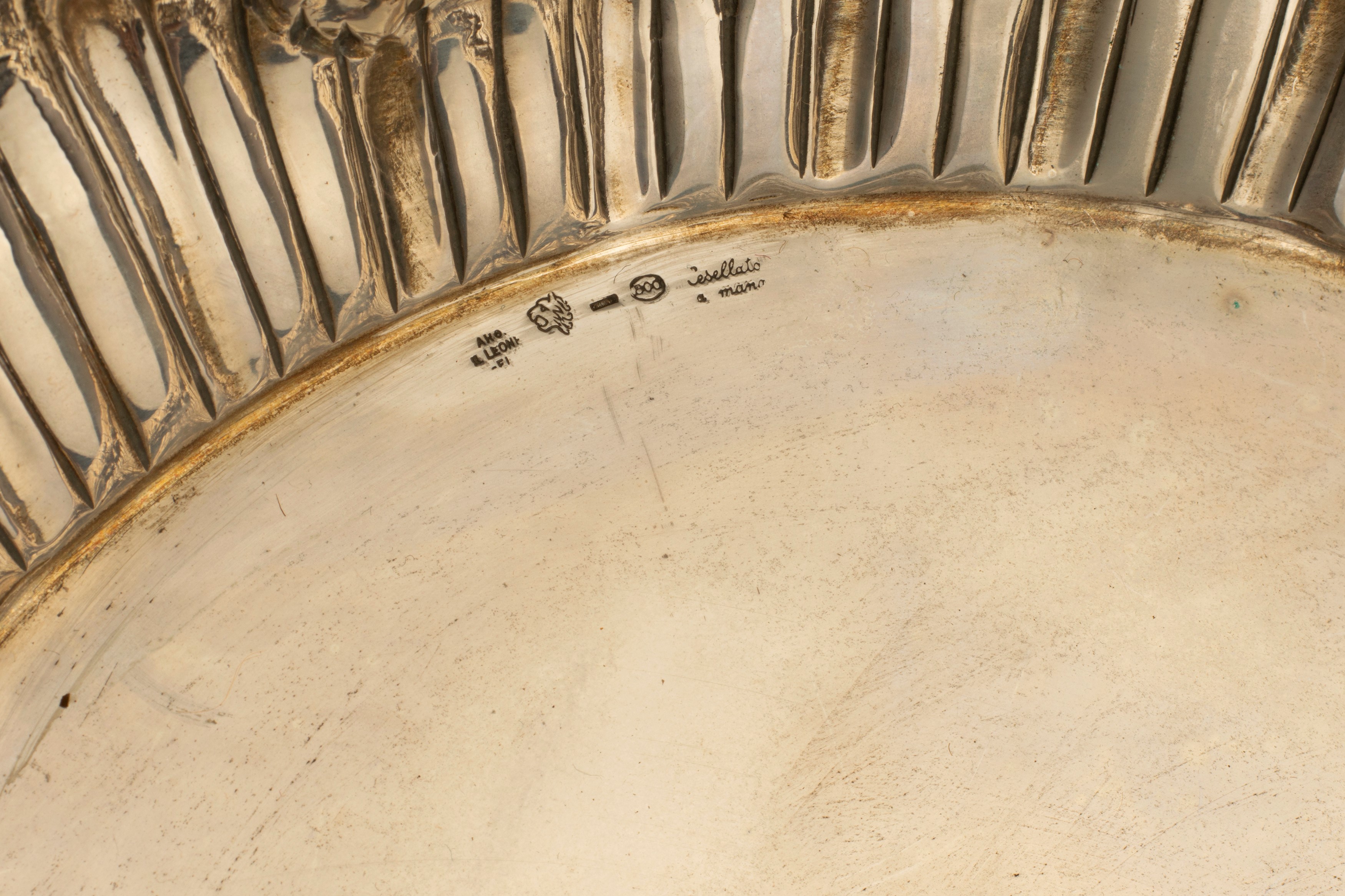 in argentodi forma circolare, fuso e sbalzato con festoni, frutti e mascheroni.