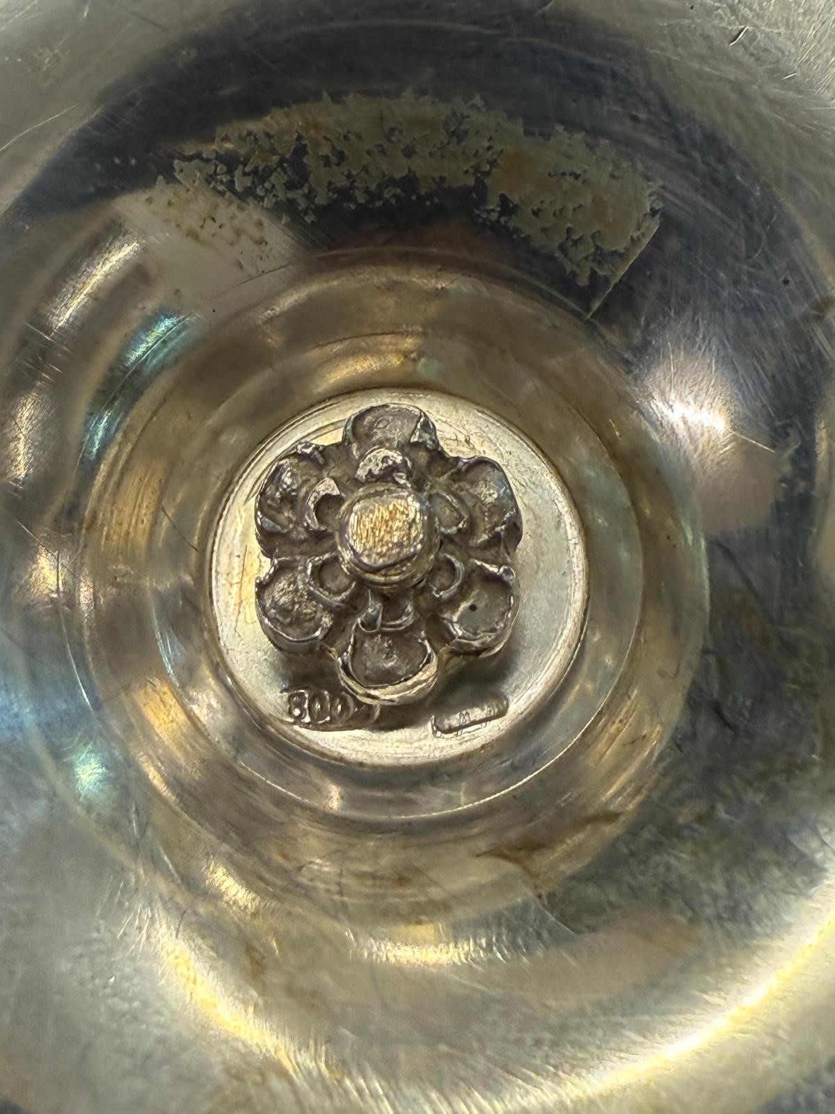 in argento e vermeilil fusto sbalzato con motivi floreali e viticci, coppa con interno in vermeil.