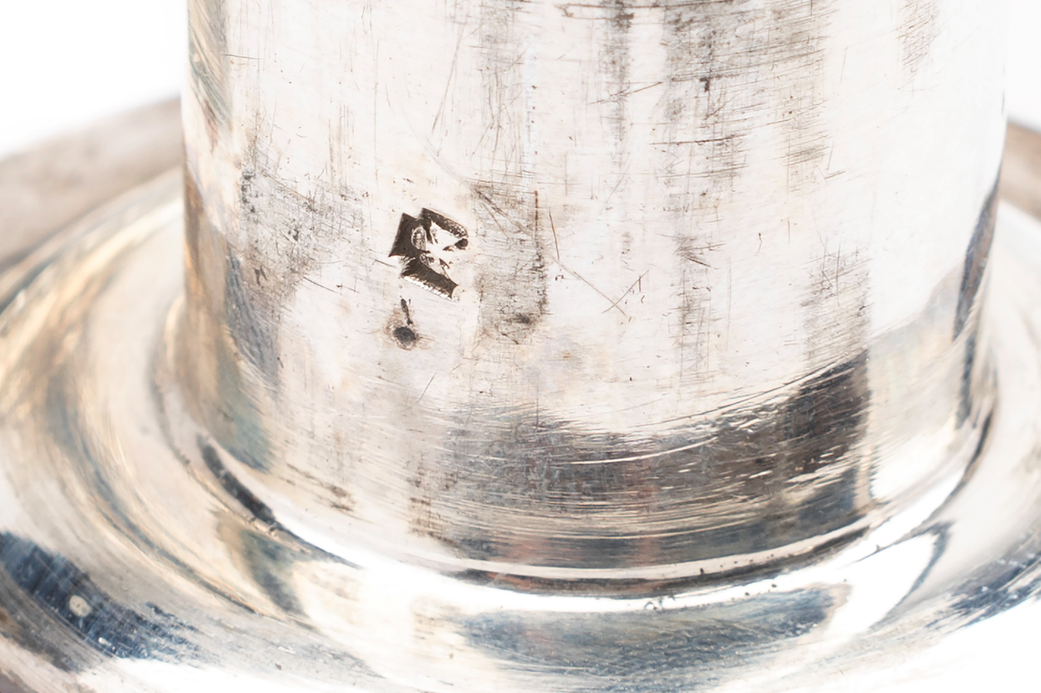una coppia (h cm 16,50) su base circolare con decoro a nervature, bobeches estraibili punzonate.