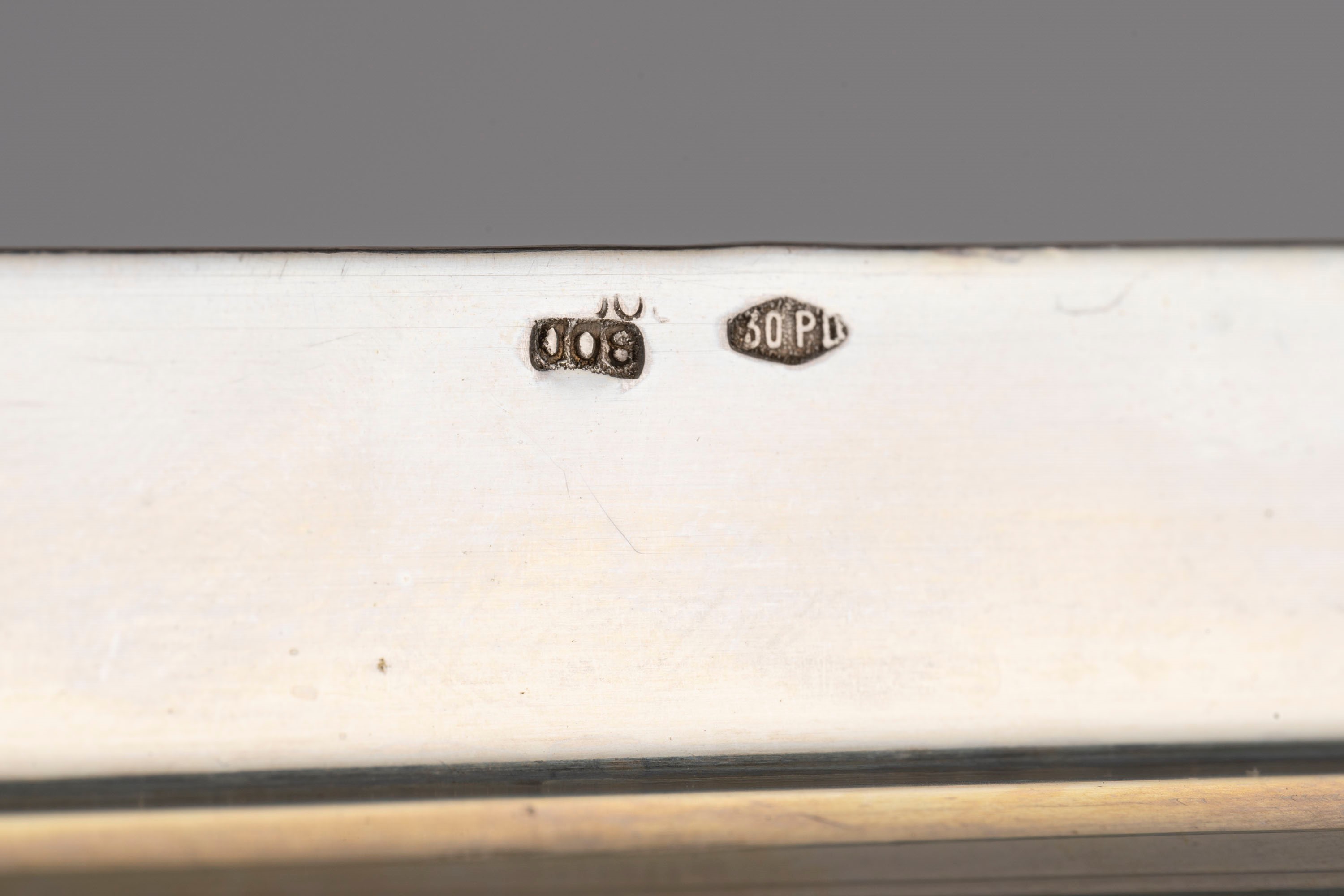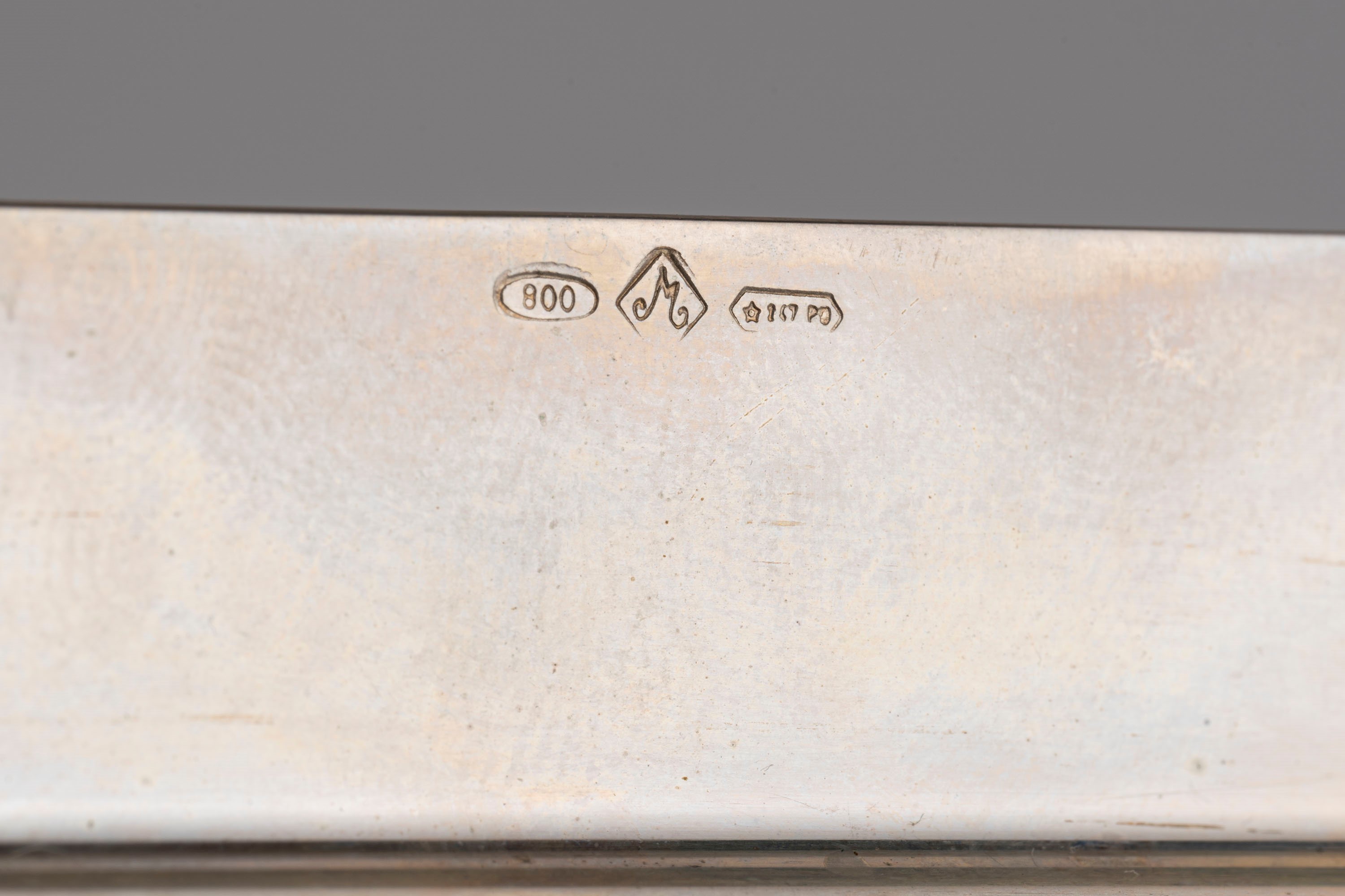 in argentodi forma rettangolare, a bordo liscio, uno con manici, difetti (un manico mancante).
