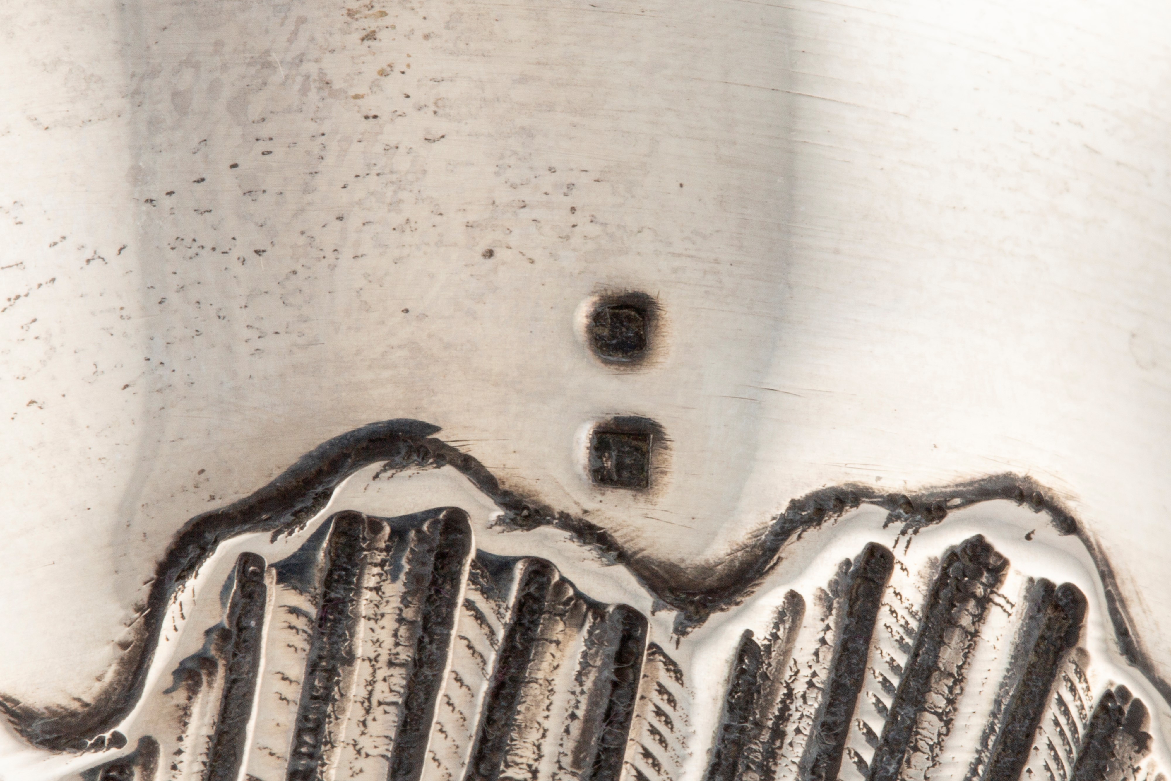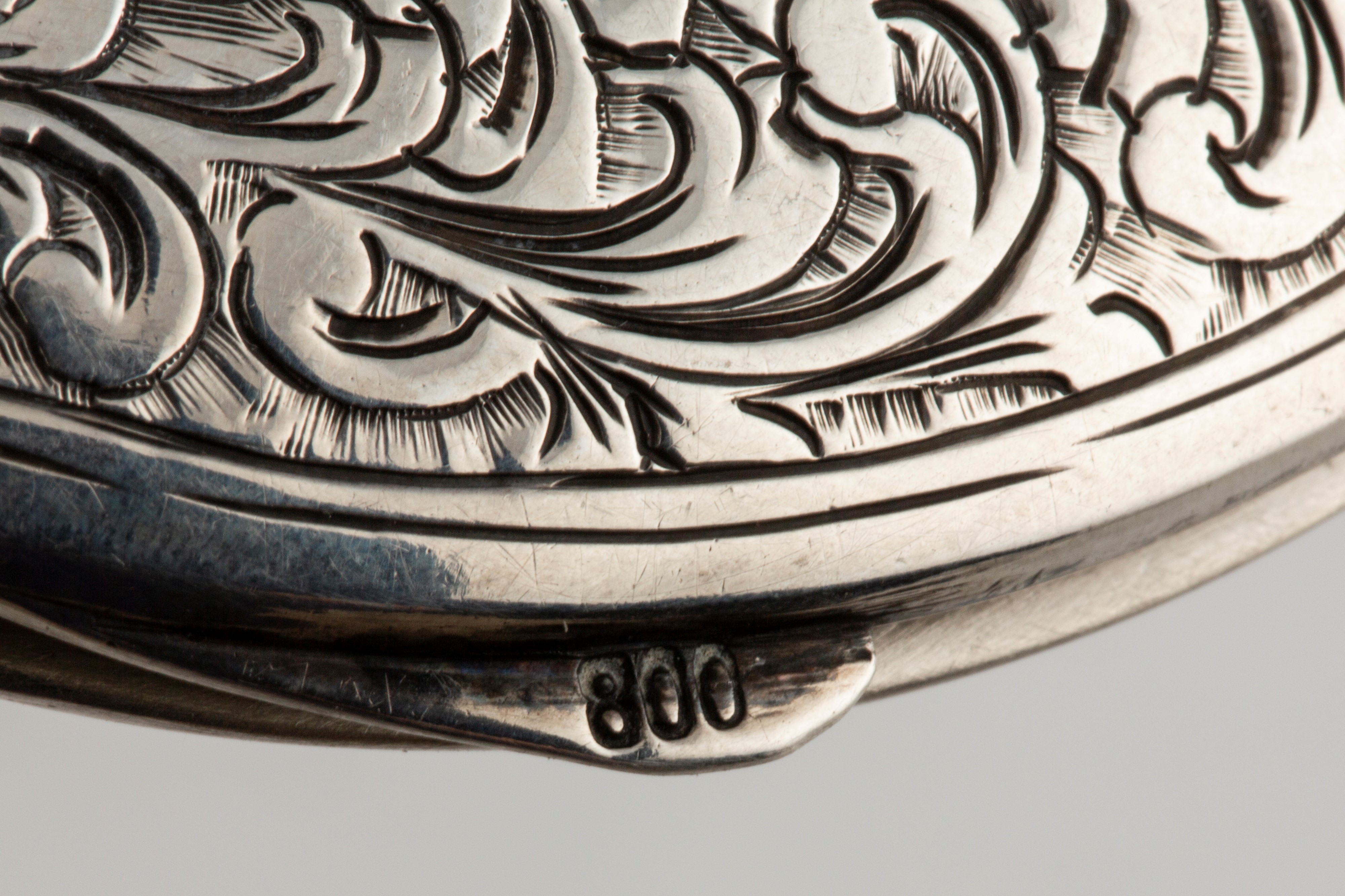 in argentocomposto da un porta Mate (mancante di cucchiaino), un bicchierino sbalzato a decori floreali, un posacenere sbalzato e inciso con figura virile, un portacipria inciso a decoro floreale e una salierina a foggia di fiore.